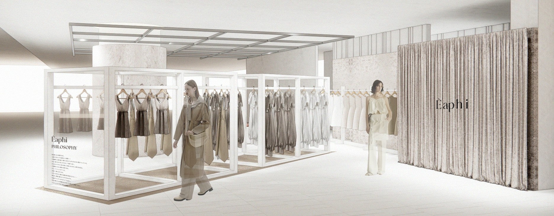 ただ服を選ぶだけではなく、Èaphiの世界観を全身で感じられる場所。