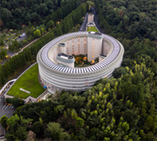 緑に包まれたドーナツ型のフォルムが特徴的なホテル
