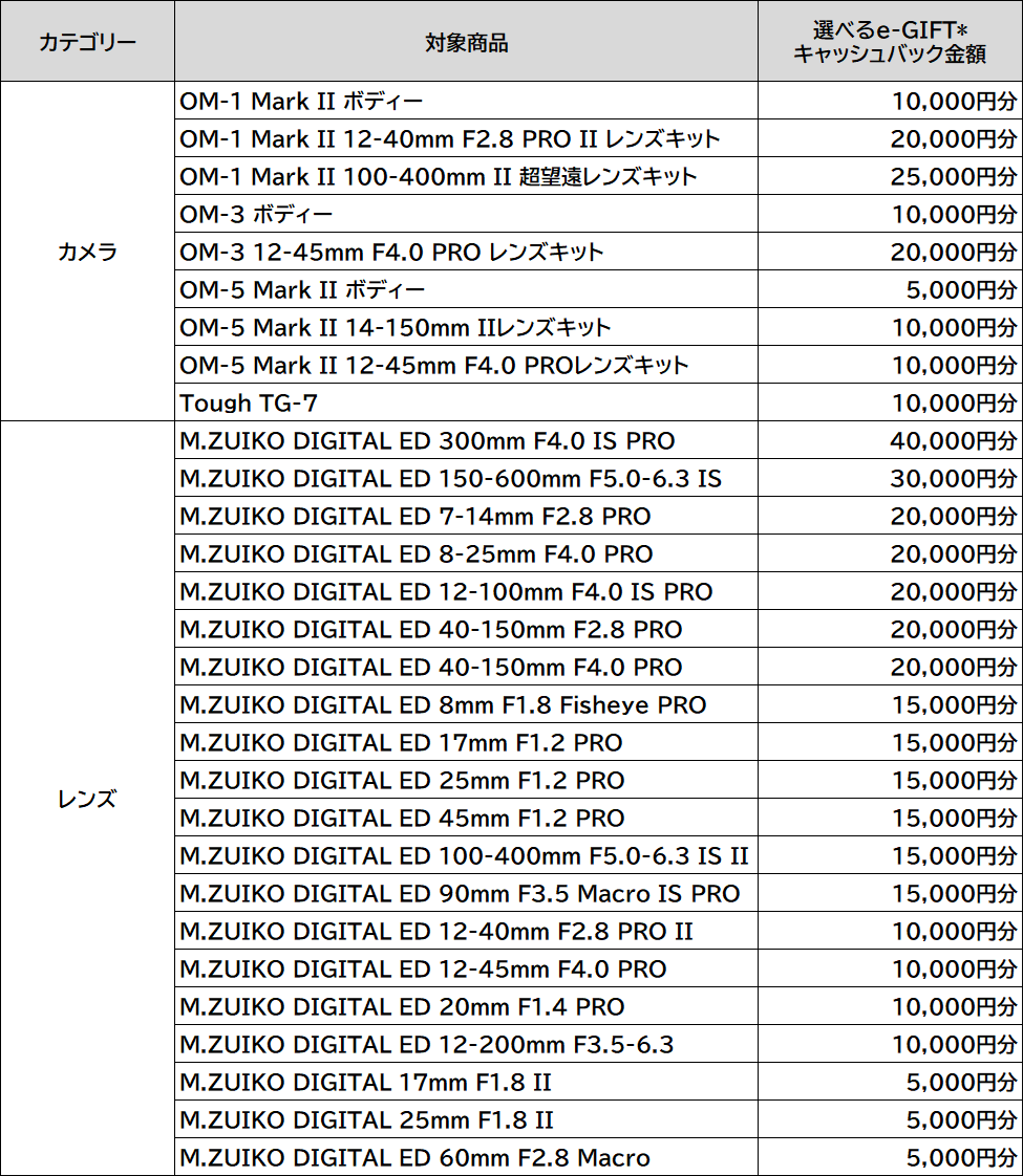 1商品あたり最大40,000円分を「選べるe-GIFT」でキャッシュバック!最新ミラーレス一眼カメラから交換レンズ、コンパクトカメラまでの29製品が対象