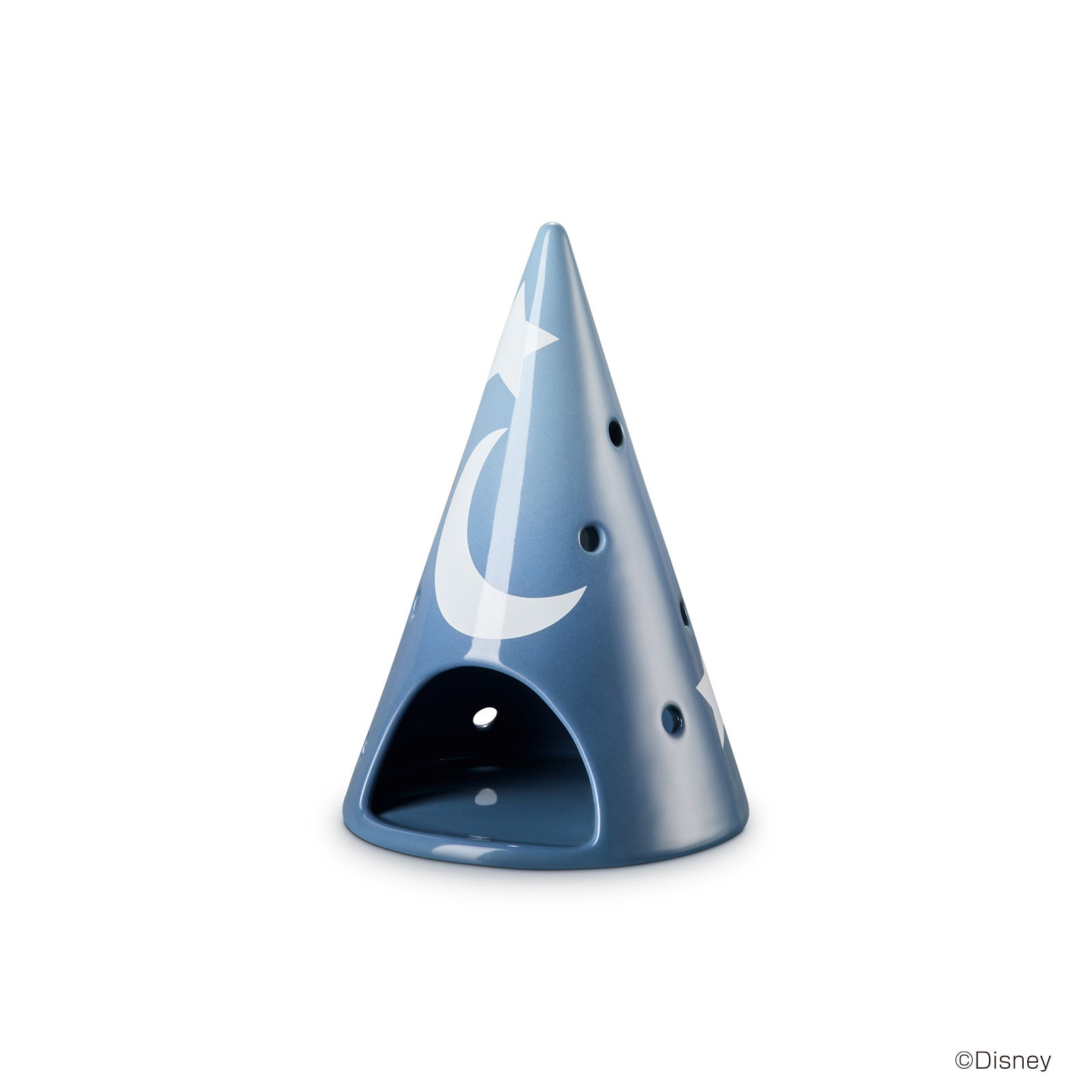 ディズニー映画『ファンタジア』に登場する、魔法使いミッキーマウスのシンボル“ソーサラーハット”をモチーフにしたキャンドルスタンド。深いブルーに星や三日月のモチーフがあしらわれたデザインは、まるで魔法のような幻想的な雰囲気を演出します。キャンドルの灯りがゆらめくたびに、ファンタジアの世界が静かに広がるような感覚に包まれます。インテリアのアクセントや特別な夜の演出にぴったりの、遊び心と上品さを兼ね備えた、インテリアに映えるアイテムです。