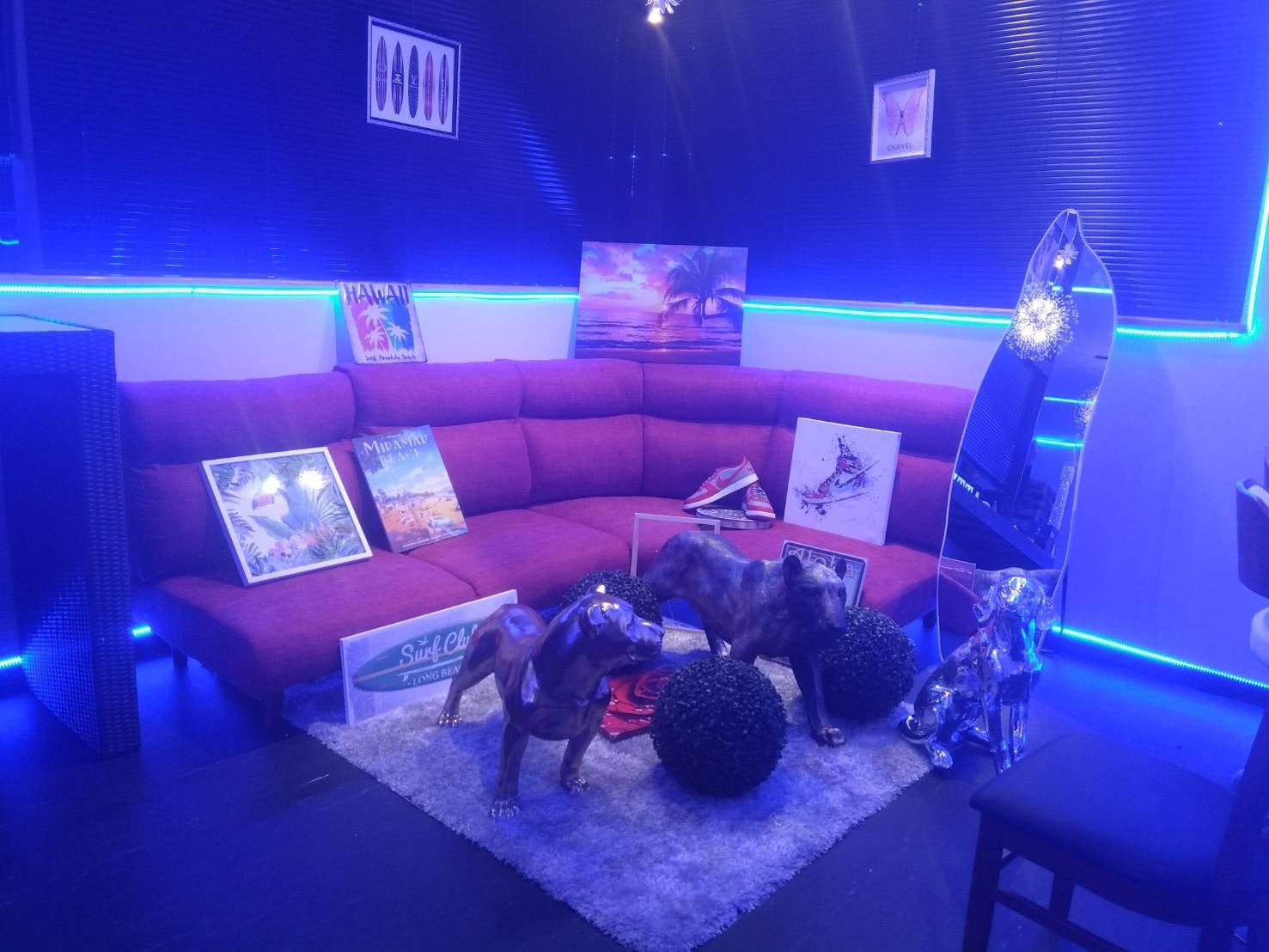アッティーボジムは、従来の“ストイックなジム”ではなく、「運動したくない日でも行きたくなる、ワクワクする健康空間」を全国に展開しています。アッティーボジム天童店は、宇宙をテーマにした幻想的な照明と、フロントに飾られた馬(ナイト)のアートが印象的な店舗です。