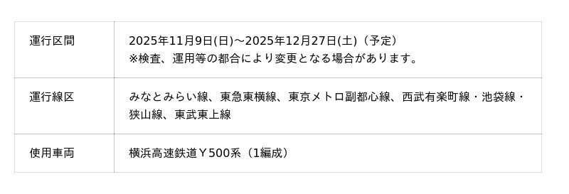 横浜高速鉄道株式会社(横浜市中区、代表取締役社長 森 秀毅)は、11月21日から12月25日の間、 みなとみらい線日本大通り駅が最寄りの横浜公園および周辺エリアで開催される、イルミネーションやアクティビティを楽しめるクリスマスイベント「BALLPARK Xmas YOKOHAMA KANNAI 2025」とのコラボレーションとして、限定オリジナルデザインのラッピングトレインの運行および記念硬券セットを発売します。今回コラボレーションデザインとしてラッピングトレインおよび記念硬券セットに登場したのは、横浜市と連携を強化しており、BALLPARK Xmas YOKOHAMA KANNAI 2025を盛り上げる「ムーミン」の限定デザイン”Moominvalley’s Winter Rose”。2025年に小説出版80周年を迎えた「ムーミン」では、自然との共生のヒントが描かれており、この”Moominvalley’s Winter Rose”では、自然からの贈り物である花の中でも横浜市の花でもあるバラを持つムーミンたちが冬を過ごす様子が象徴的に描かれています。今年の冬は、みなとみらい線に乗って、昼夜を通して展開されるクリスマスイベントをお楽しみください。