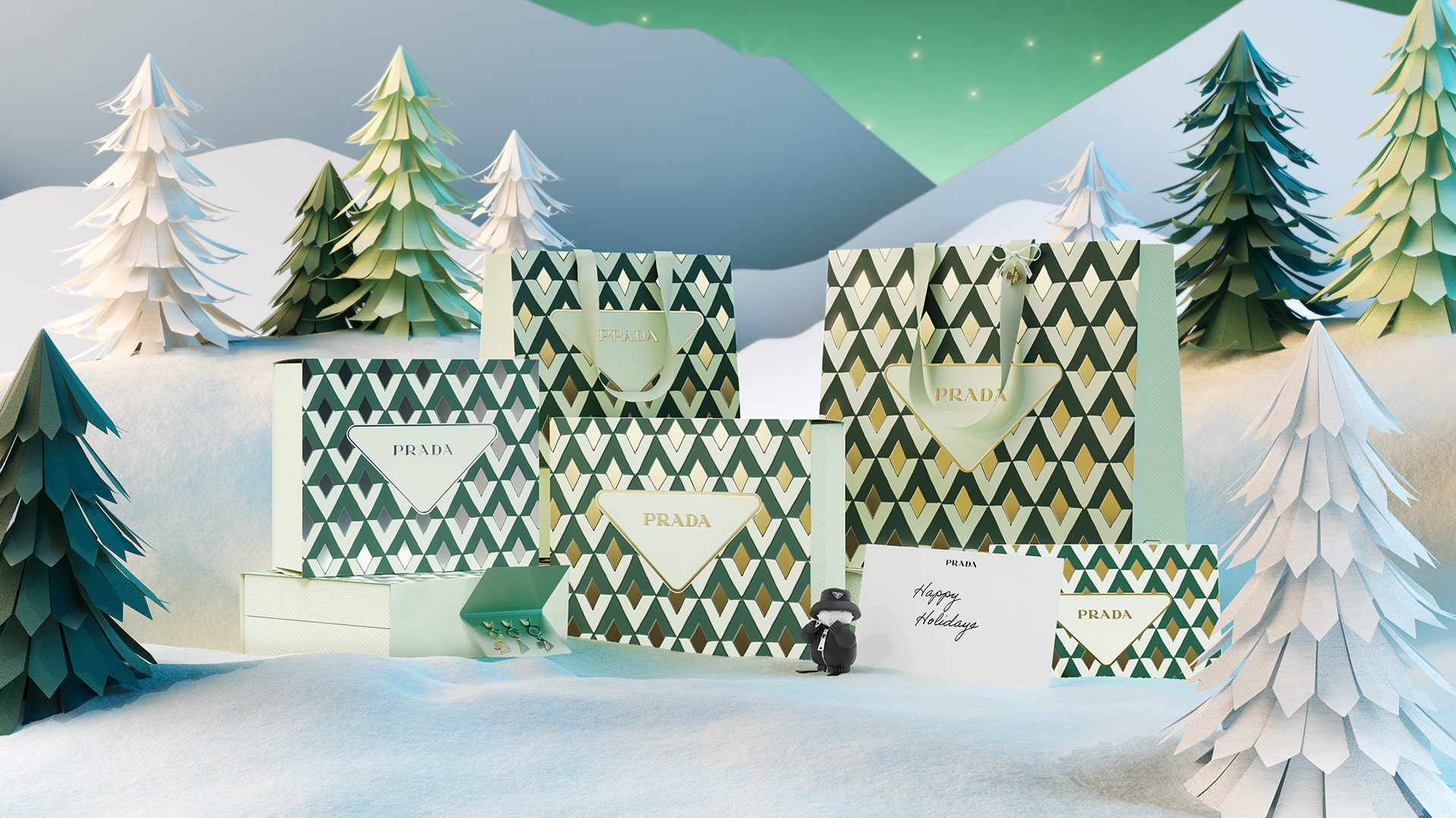プラダのアイコン 「ソフトロボット」たちが、切り絵で彩られた魔法の世界で心躍るホリデーの魔法をお届けするホリデーコレクションをお楽しみください。