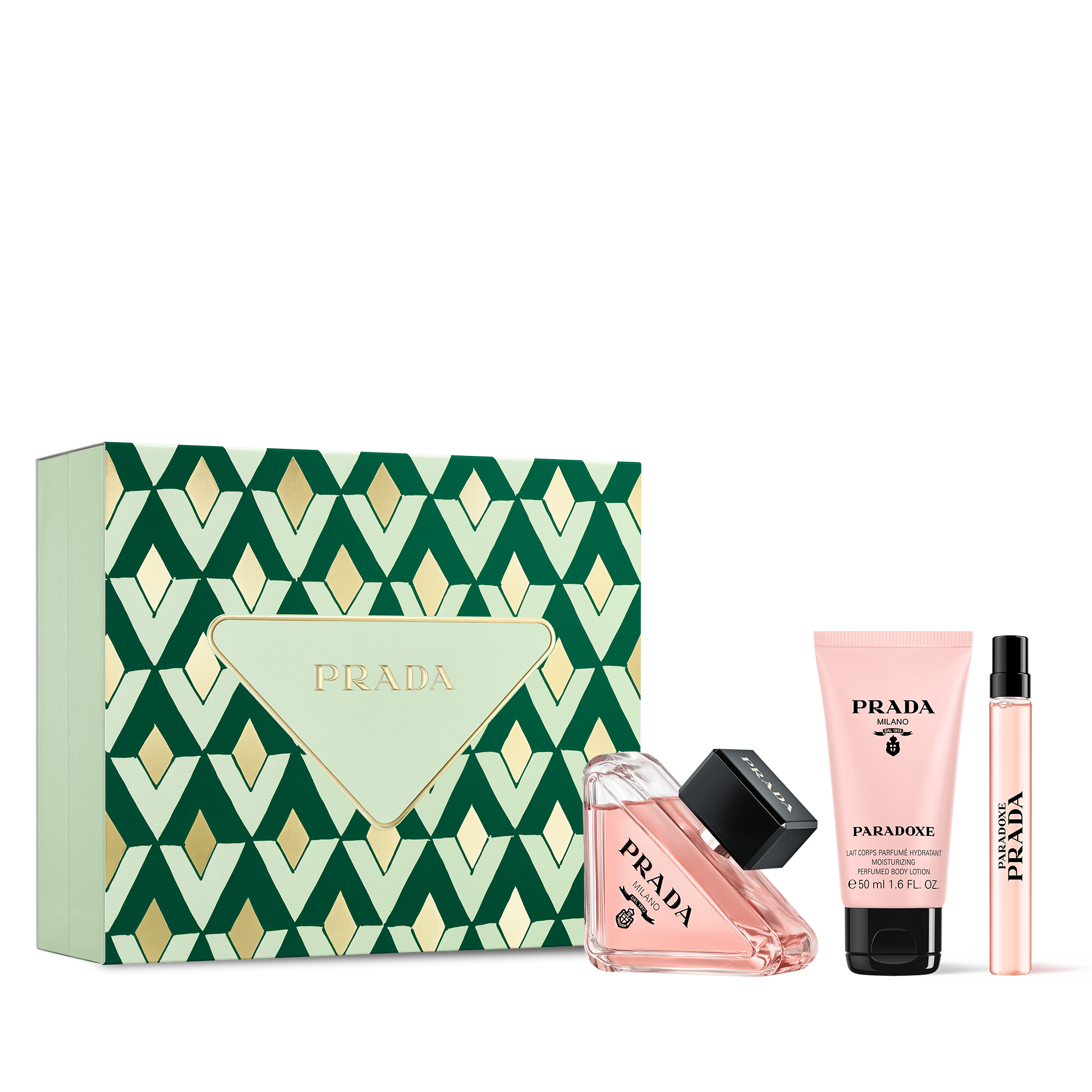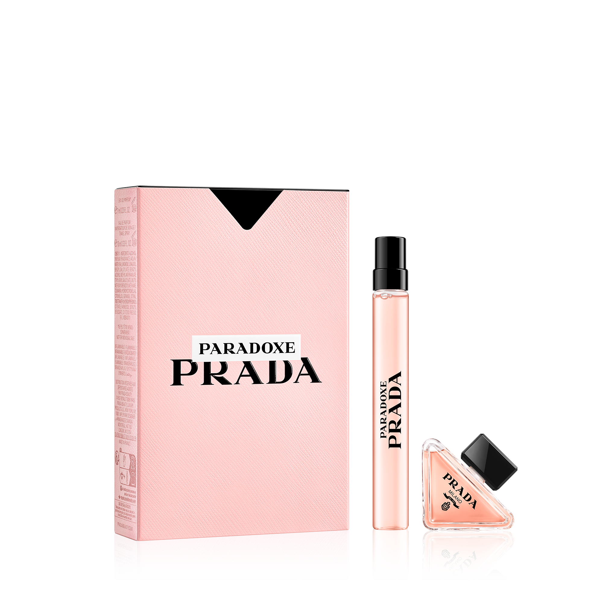 次に、「プラダ パラドックス オーデパルファム」の魅力をトータルケアで体感いただける、ボディーローションもセットになったリッチなコフレも展開します。