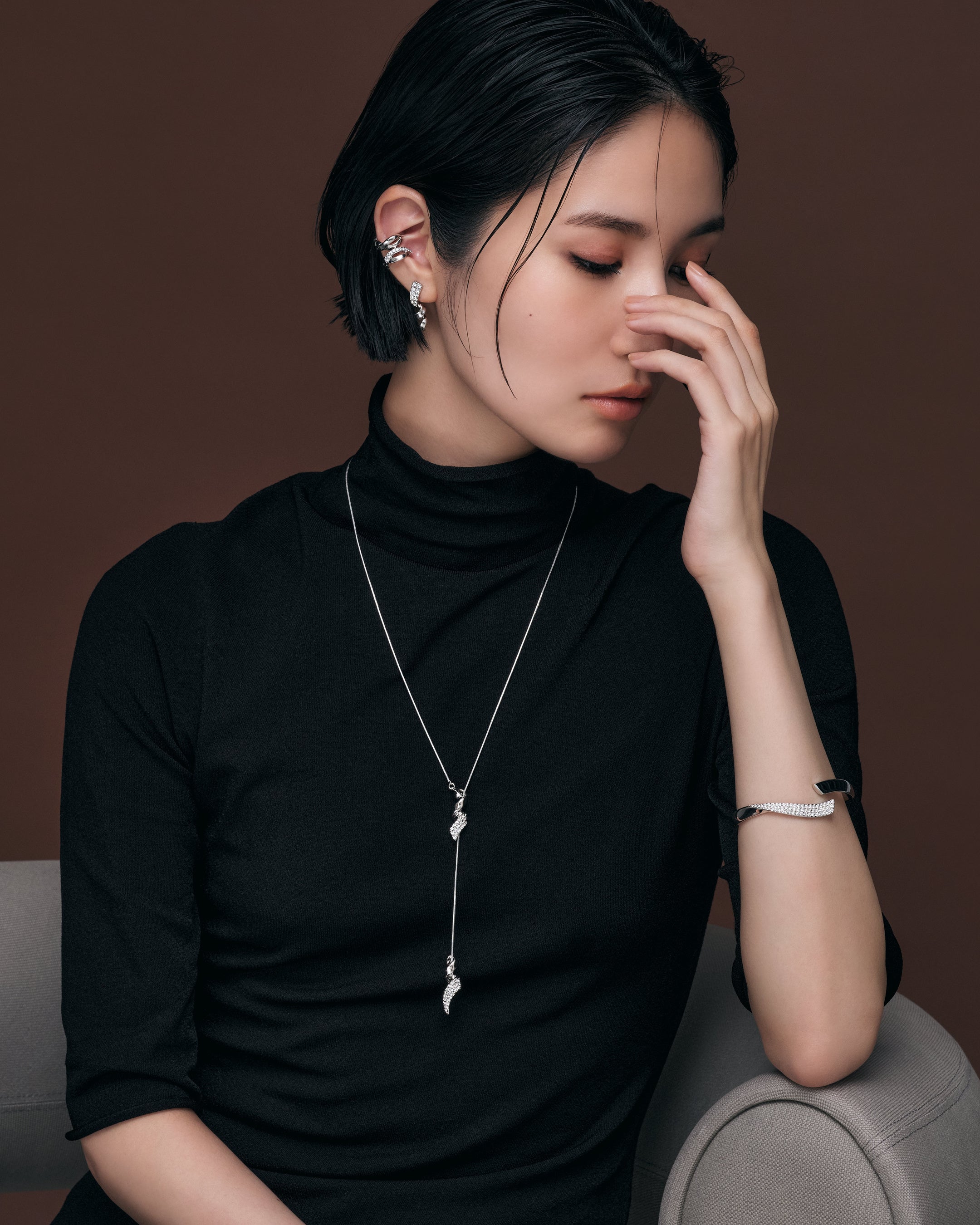 ネックレス¥29,700、ピアス/イヤリング¥17,600、イヤリング(イヤーカフとして着用)¥39,600、ブレスレット¥27,500