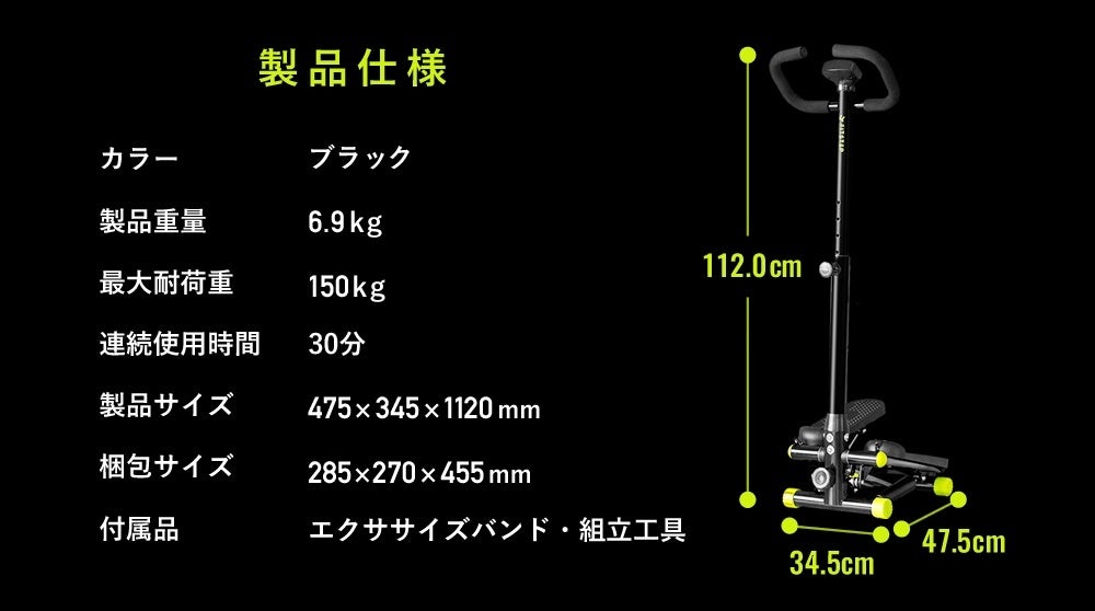 「忙しくて時間がない」、「ジムに行くのは面倒」といったお客様の声に着目し、全身のエクササイズが1台でできるステッパーを設計しました。