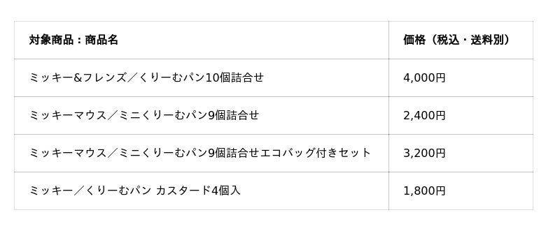 特設ページでは好評をいただいている『ミッキー&フレンズ』デザインの4商品をピックアップしています。カワイイパッケージデザインに包まれたくりーむパンのセットや、思わず笑顔になってしまう『ミッキーマウス形のくりーむパン』の他、日常使いにもぴったりな『ミッキーマウスデザインのエコバッグ』付きのセットもラインアップ。お祝いの気持ちを込めて配布する特別クーポンは、特設ページに掲載商品を含む注文を500円オフ(条件あり)で購入いただけます。
