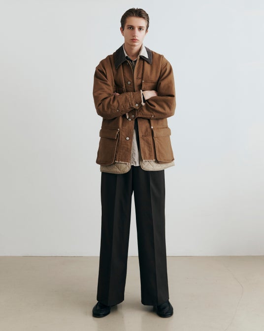 CONNECTED COVERALL JACKET税込価格:¥93,500-インラインで展開していたレザーのカバーオールジャケットをベースに素材やデザインを変更。素材は硫化染めのオーガニックコットンダック素材に変更し、ライナーはウールメルトンからナイロンの中綿キルティングに変更しています。