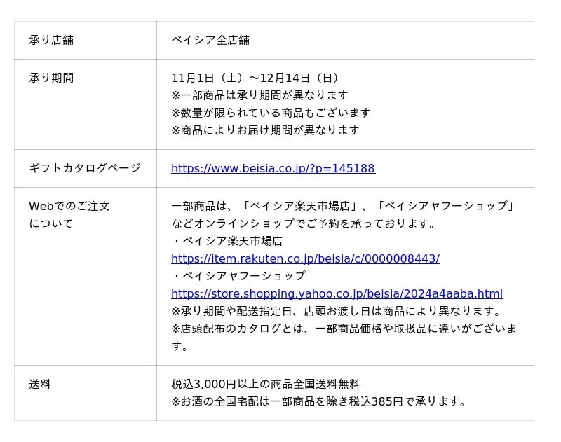 ベイシアの2025年「冬ギフト」11月1日(土)より注文承り開始