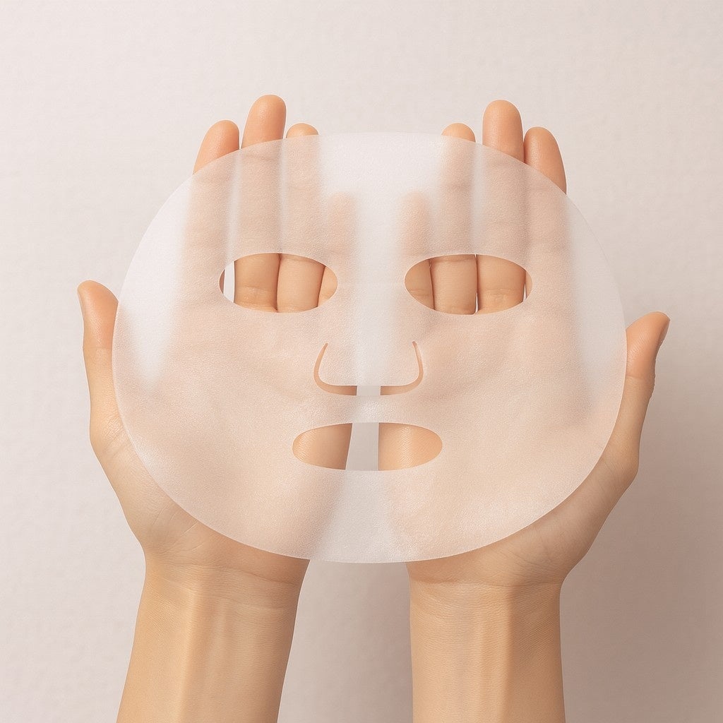 フェイスマスクのポイントとなるシートの素材。ダマイでは、お肌へ潤いを効率的に届ける、バイオセルロース素材を採用しました。ココナッツ果汁などを乳酸菌(アセトバクター属など)が発酵する際に生成する天然のナノ繊維セルロースは、極めて細かい繊維構造(ナノレベル)により、美容液をたっぷり保持できます。肌に密着して隙間を作りにくいため、成分を角質層まで浸透させやすく、また、通気性がありながら、水分蒸散を防ぐ“セカンドスキン効果”により、ナノレベルのきめ細かい繊維で構成されたシートは、肌へ吸い付くように密着することで、とろみのある美容液級の成分を効率的に肌※2へ届けます。