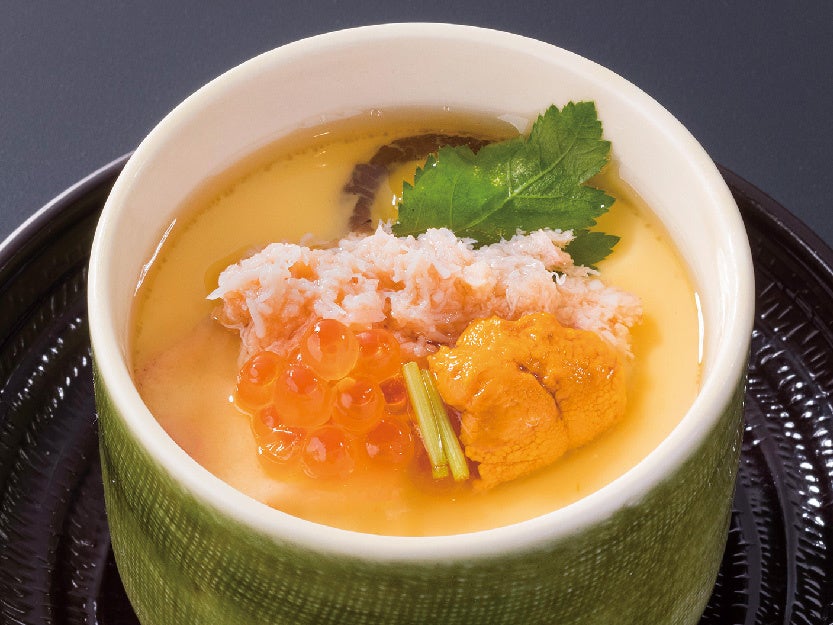 紅ずわい蟹、生うに、いくらをあしらった、熱々のあんかけ仕立ての贅沢な茶碗蒸し。