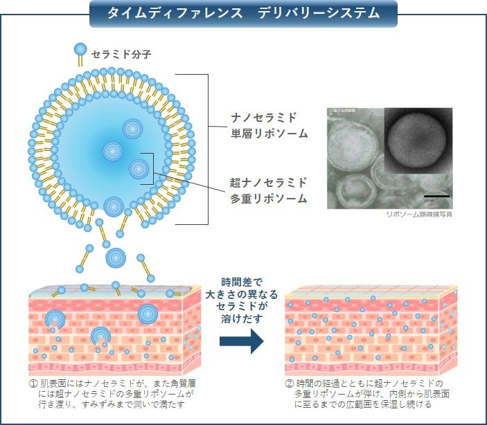 肌を土台*3から立て直して、エイジングケア*8まで●独自「タイムディファレンス デリバリーシステム」が、ヒト型ナノ生セラミド*5を、広く、長く、送り続ける