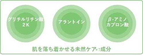 さらに、グリチルリチン酸2K、アラントイン、β-アミノカプロン酸も配合。( すべて皮膚コンディショニング成分)外的環境やアレルギーなどによる肌トラブルが表面化してしまう前の未然ケア*7で、どんな時も動じない健康的な肌を保ちます。