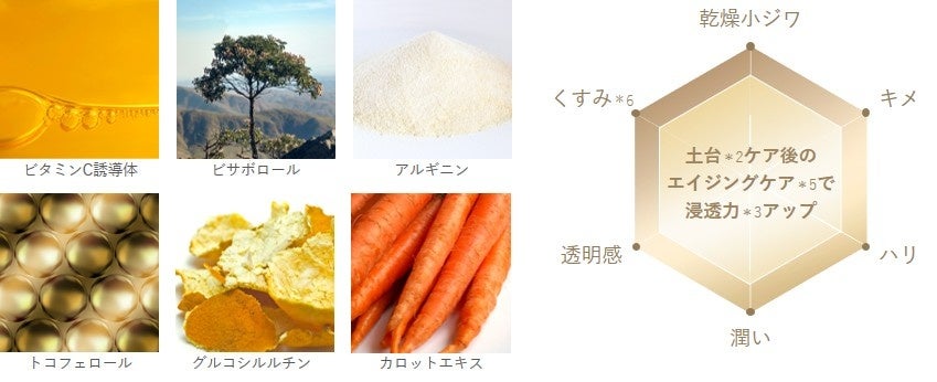 整えた土台*2だからこそ浸透*3。6つ*4の積極エイジングケア*5成分配合