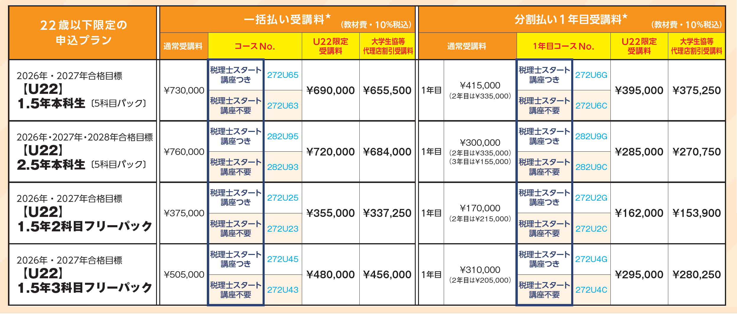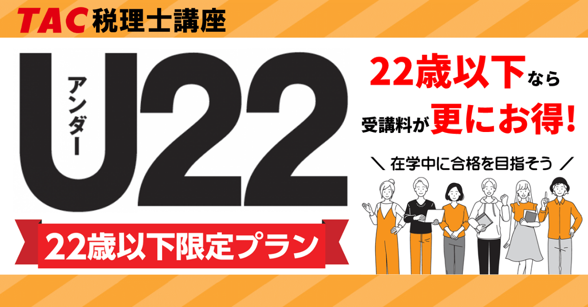 【TAC税理士】22歳以下ならお得な受講料でスタートできる!~22歳以下限定プラン~