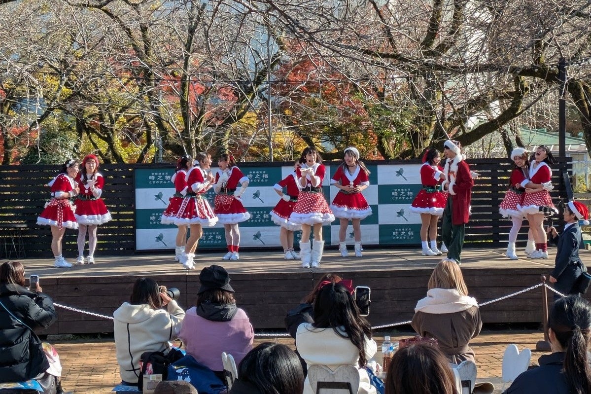 舞台は、時之栖園内の屋外ステージ「さくらSQUARE」。16:15~と18:00~の2回公演で、クリスマスをテーマにしたスペシャルダンスステージが繰り広げられます。キラキラと輝くイルミネーションの中で、笑顔あふれるダンサーたちが冬の夜を温かく彩ります。楽曲や振付、衣装はすべてクリスマス仕様。子どもから大人まで楽しめる構成で、ファミリーやカップルにもおすすめです。