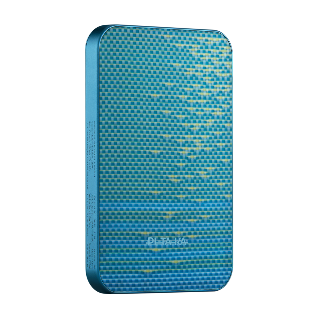 Qi2対応MagSafeモバイルバッテリー。アラミド繊維製の薄型軽量ボディで、iPhoneの背面にマグネット装着しワイヤレス充電が可能。高速充電対応で外出先でも安心の大容量設計。PITAKAケースとの一体感あるデザインで、スマートに持ち運べる次世代モバイル電源です。