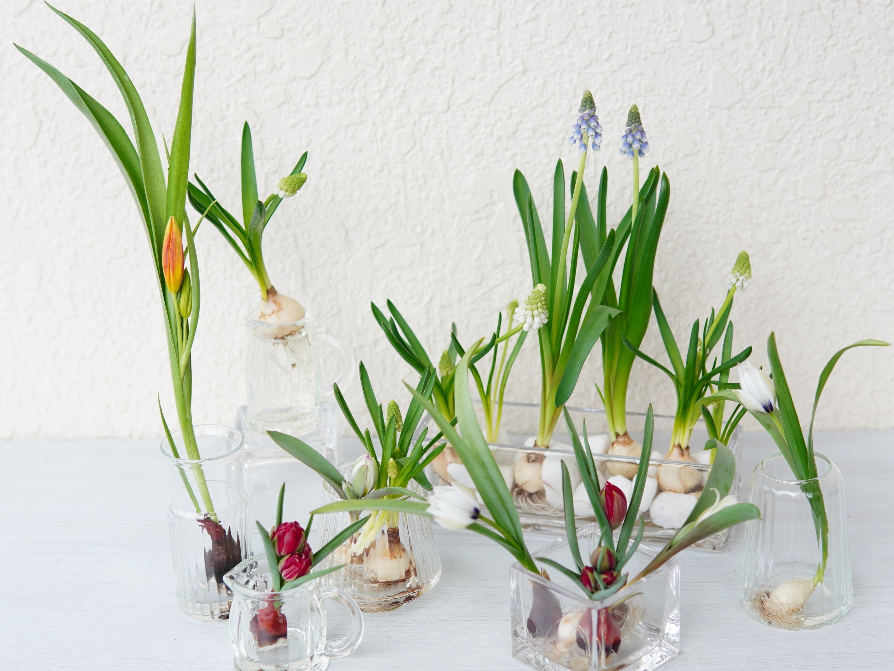 水に浸すだけで、球根から芽吹く姿や根の成長まで楽しめる、 やさしい水耕栽培キット。