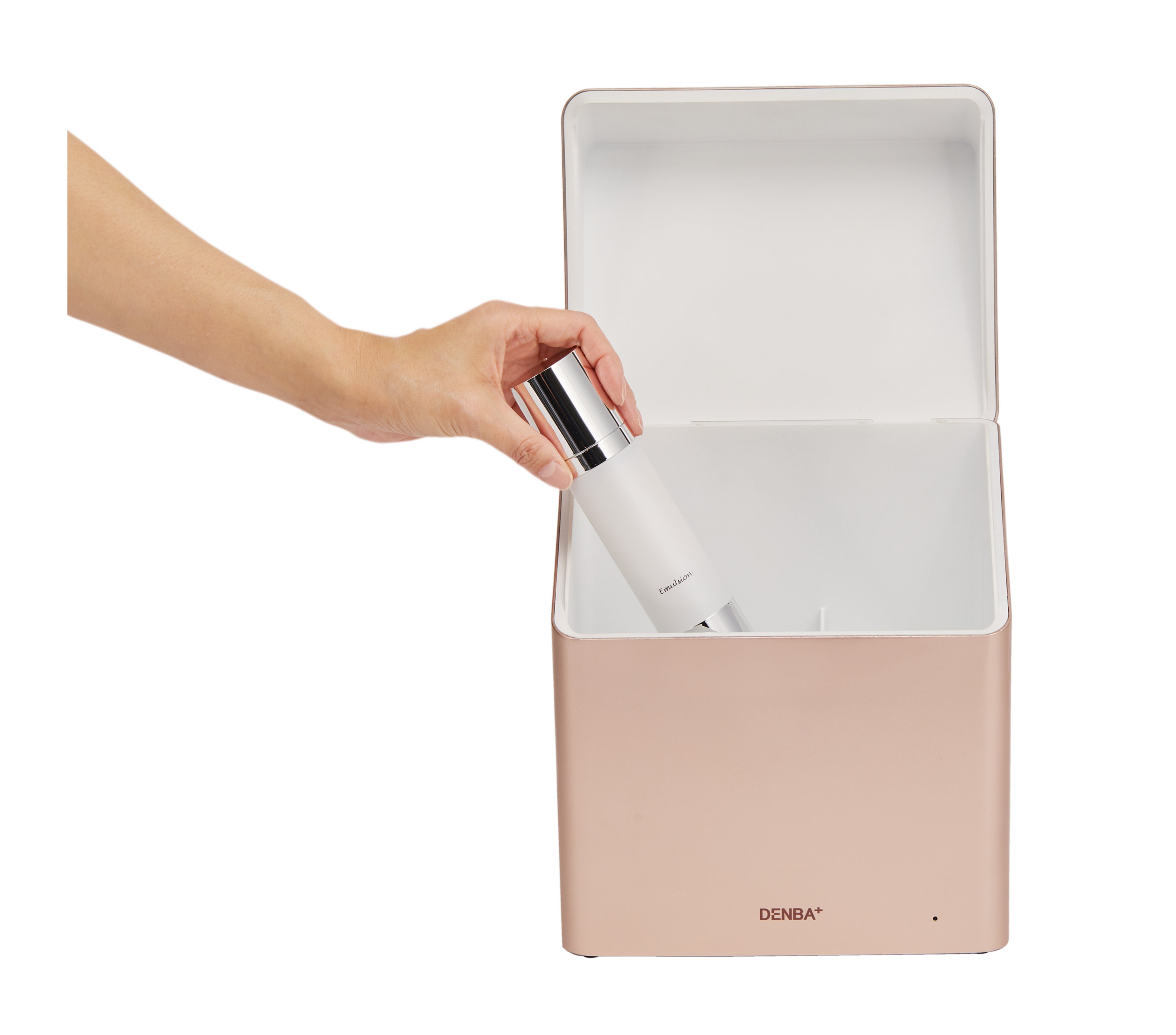 <“新発想のコスメボックス”DENBA binno>DENBA binnoは、全く新しい発想から生まれたコスメボックスです。特許取得の「空間水分子活性技術」により、化粧品の持つ浸透力*を引き上げます。特別なことはなにも必要ありません。お気に入りの化粧品をただ入れて電源を差し込むだけ。binnoが、普段お使いの化粧品の浸透力*を存分に発揮させます。*角質層まで