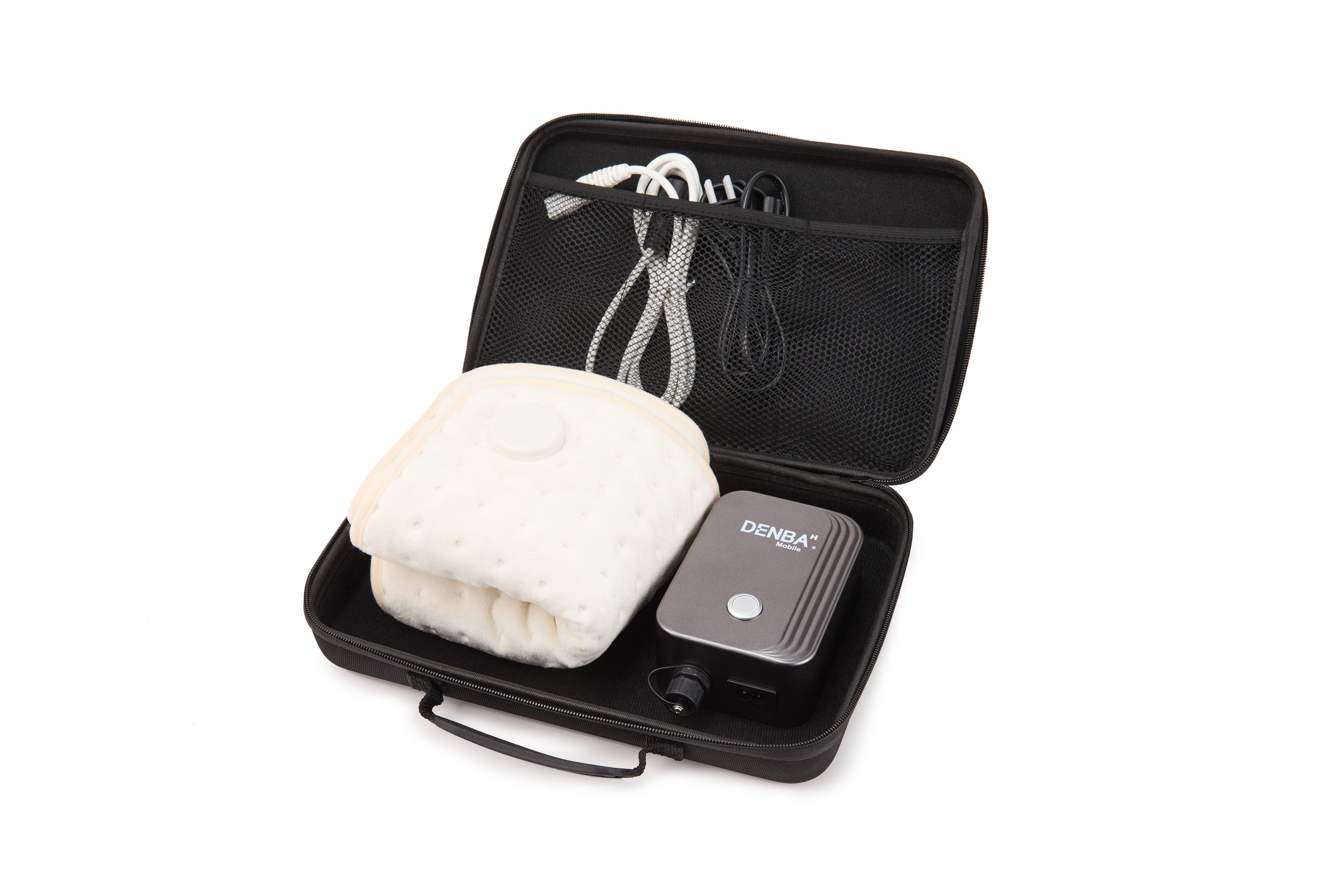 <“持ち運べるからいつでも使える” DENBA Mobile>DENBA Healthを小型軽量化したDENBA Mobileは、コンパクト設計でどこにでも持ち運びが可能。新幹線や車の移動時にも使用することができます。小さくなっても効果はDENBA Healthと変わりません。