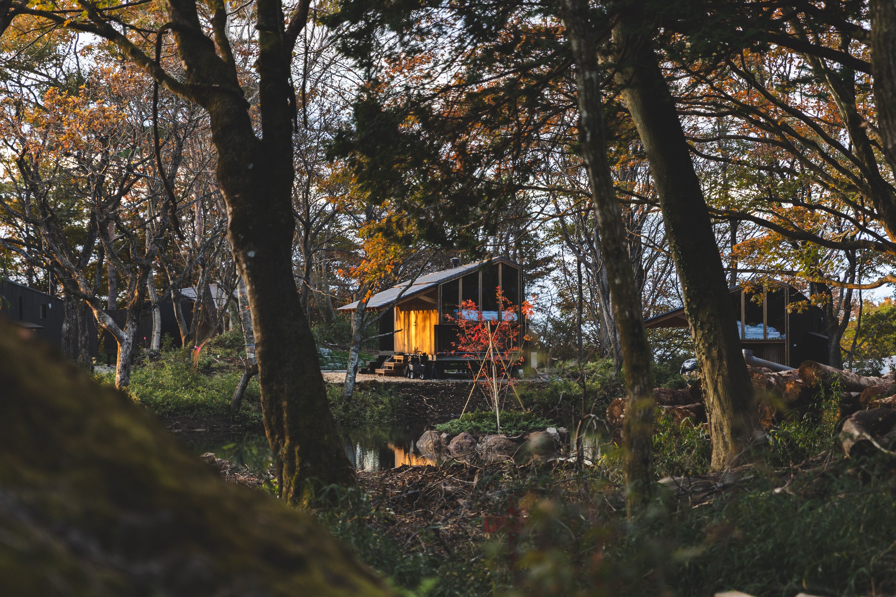 Earthboatの新拠点として、栃木県那須町に「Earthboat Nasu」を開業いたします。池に19棟を配した敷地で、森と池に囲まれたプライベートな時間をお過ごしいただけます。全棟にフィンランド式プライベートサウナを備え、好きなタイミングでサウナを楽しめるEarthboat共通の体験はもちろん、那須湯本の硫黄泉を楽しめる共用露天風呂やプライベート露天風呂付き棟もあり、大切な人や家族と自然の中でゆったりとした滞在を楽しめます。
