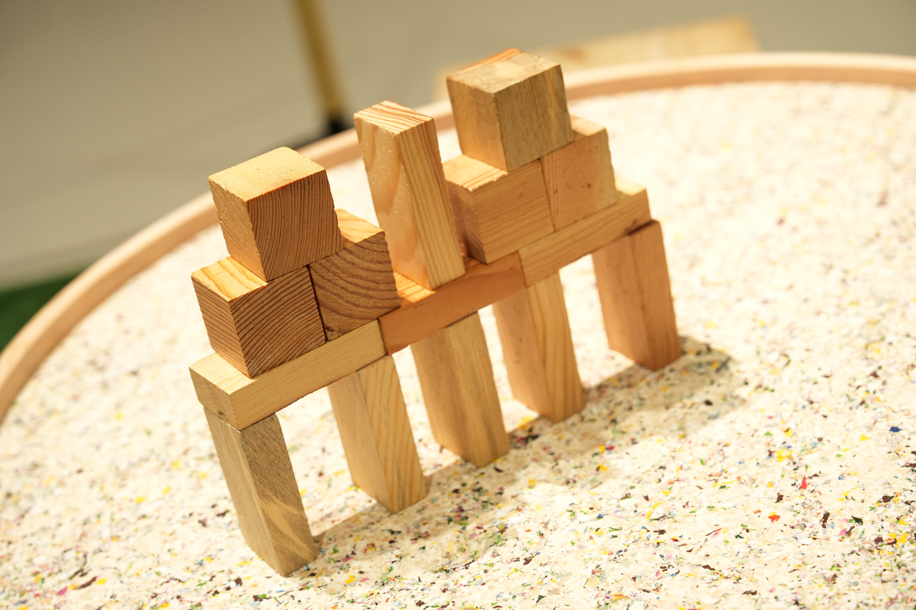 遊んでい館?でも大好評だった、里山木材を活用した「あづみの積木」もASOBLEそよら三条須頃店に設置されます。