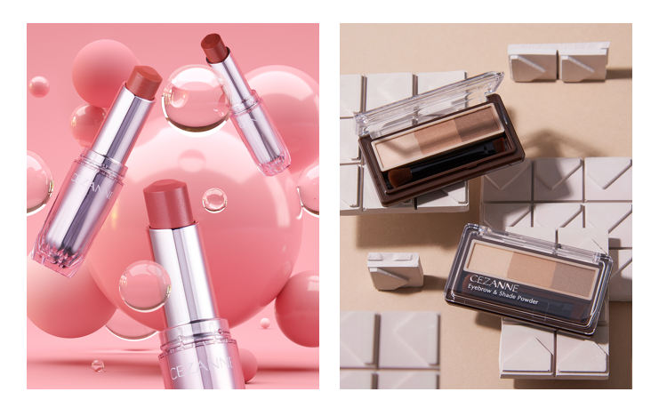 セザンヌ大人気リップがリニューアル!潤いツヤ唇を叶える美容液ティントリップ&立体眉に仕上がるノーズシャドウ入りアイブロウパウダーが新登場
