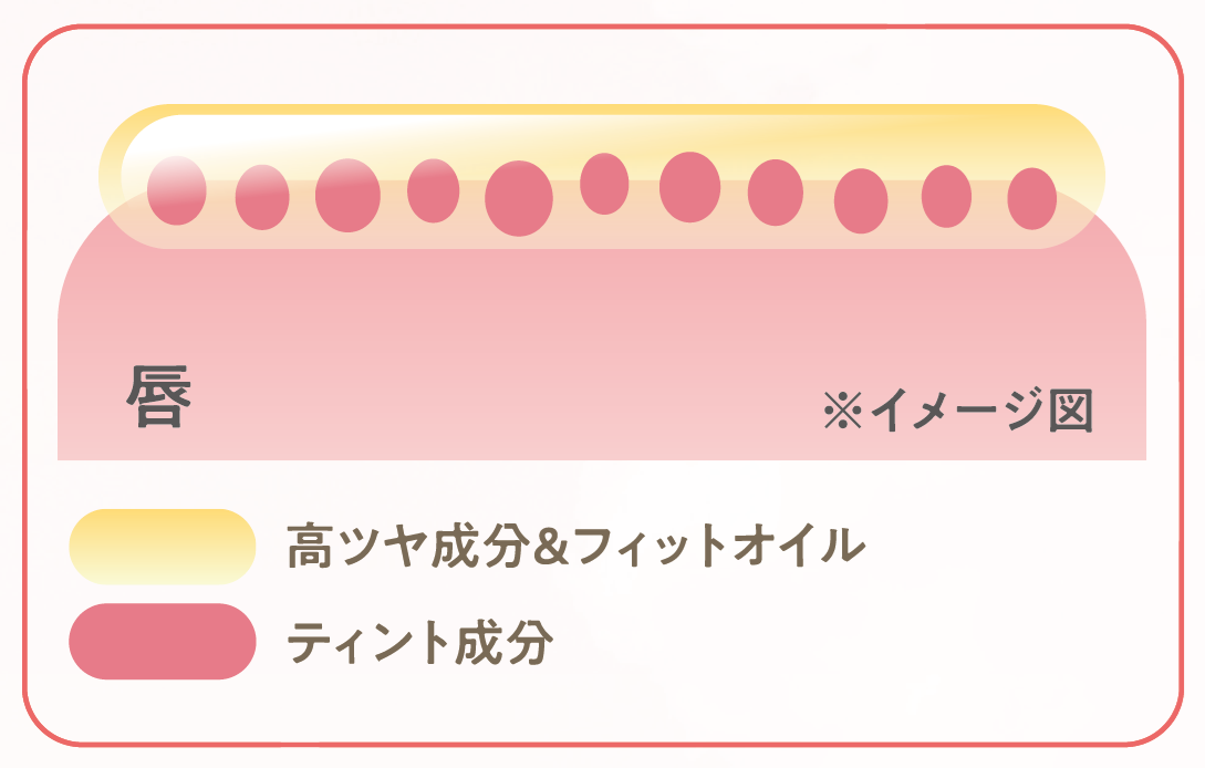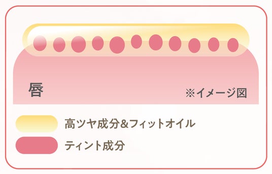 また、フィットオイルが色素を唇にピタっと密着させ、塗りたてのきれいな発色を長時間キープしてくれます。