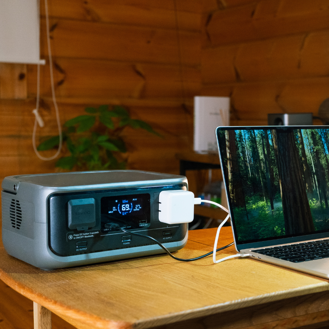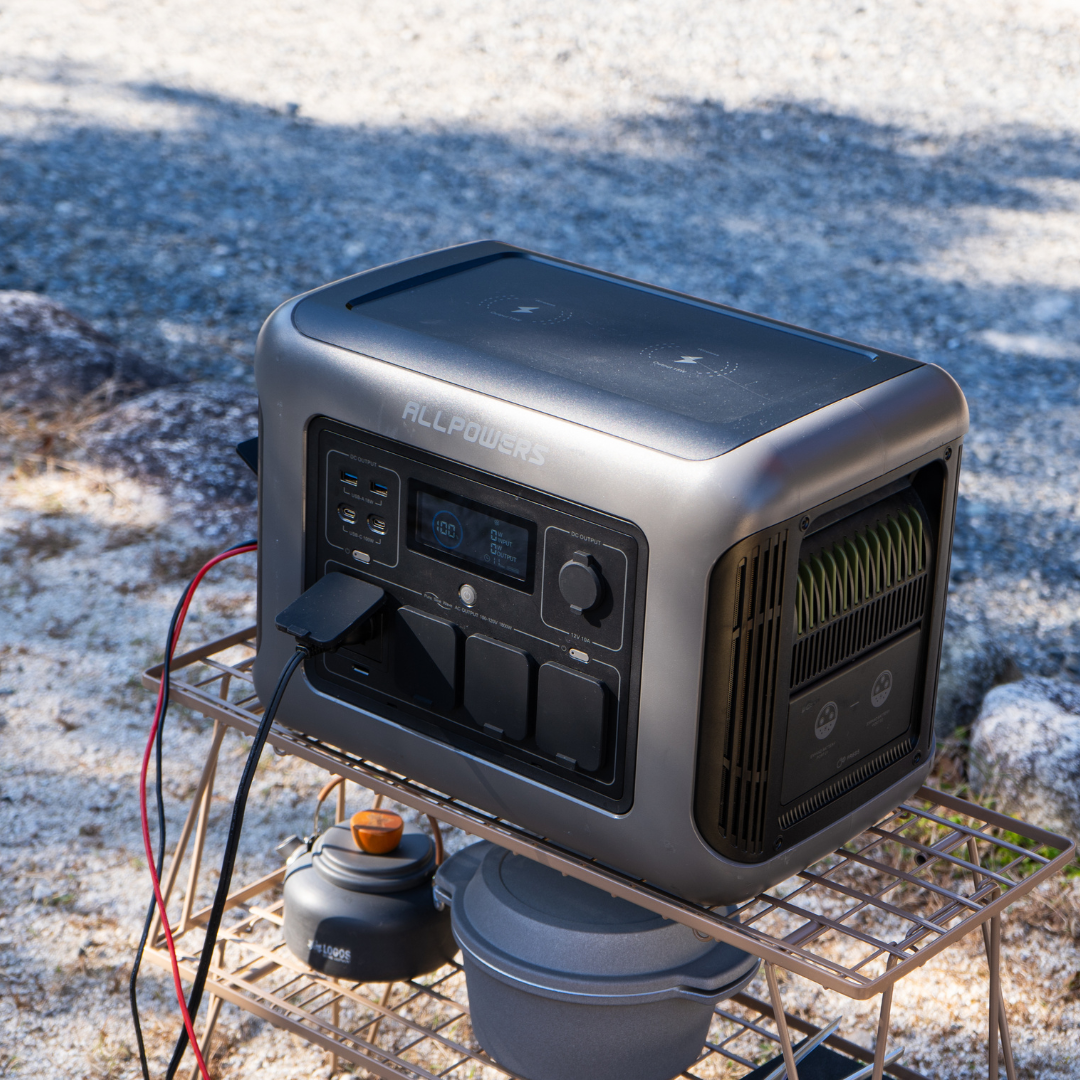 R1500 ポータブル電源1152Wh・1800Wの大容量モデル。ほとんどの家電が使える。45dBで極めて優れた静音性。45分で80%まで充電可能、最大11台のデバイスへ同時充電OK、ファミリーキャンプや防災用にも最適。