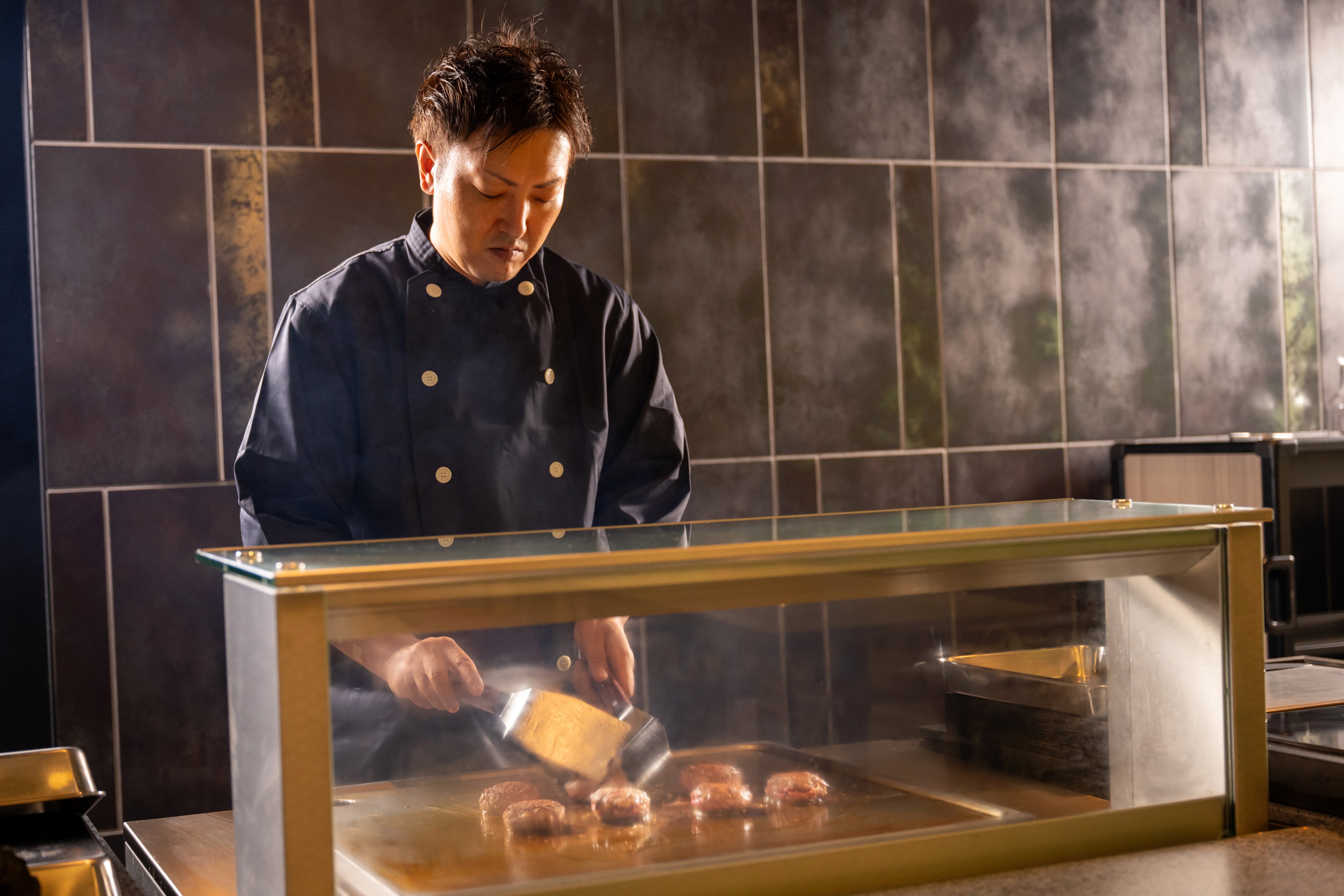 能登牛・能登豚ハンバーグの鉄板焼きや、ガス海老と加賀野菜のかきあげなど、シェフが目の前で腕を振るう出来立ての逸品をご賞味ください。