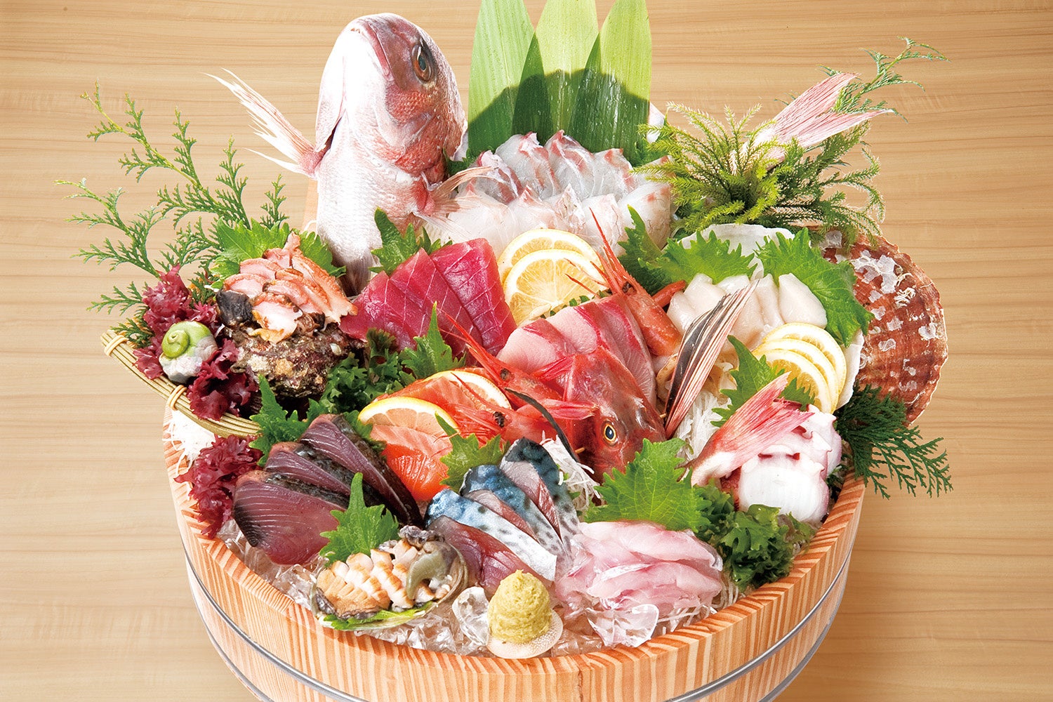 さらに、『大庄水産』の豪快さを象徴するのが「刺身盛り合わせ」。グループ会社である豊洲市場の老舗仲卸「米川水産」から、仕入れたその日に直送される鮮魚を、板前がその場で丁寧に捌き、桶に盛り付けて提供します。鮮度と迫力を兼ね備えた一品です。