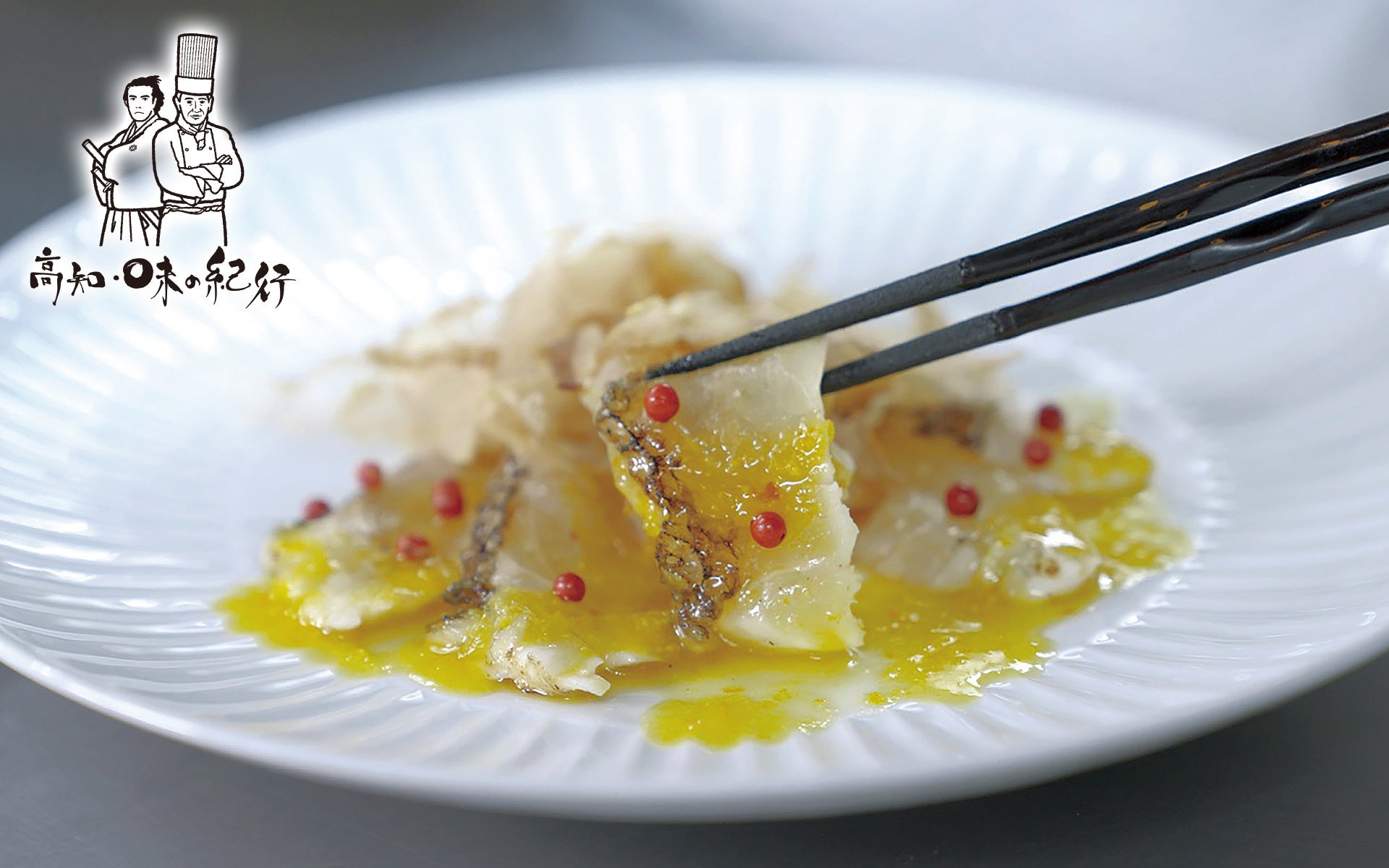 土佐の醤油に昆布・鰹節・どんこ・陳皮を漬け込み、グレープシードオイルでまろやかに仕上げた深みのある香味ソースと、温州みかんのはちみつと酸味を加えた爽やかでフルーティーなソース。