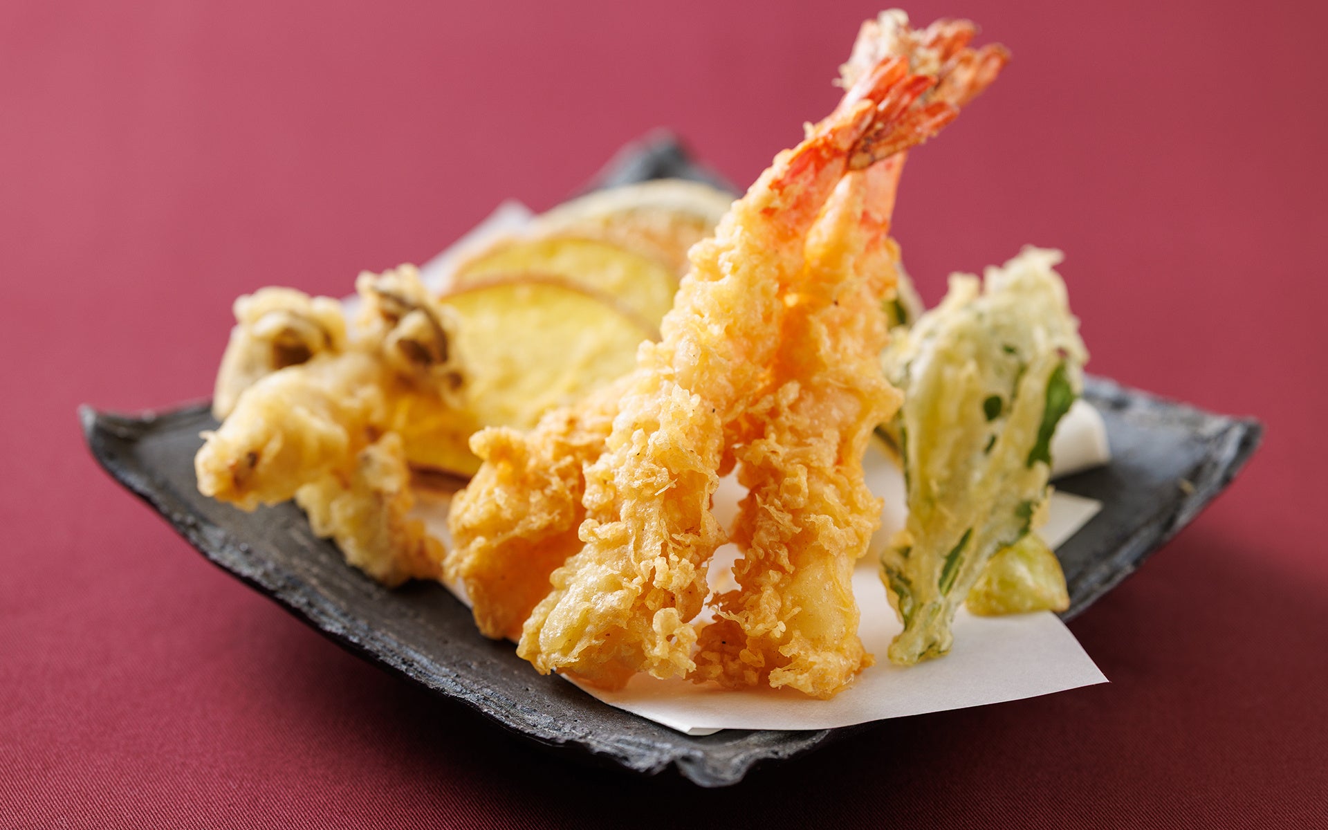 揚げたての天ぷらは、素材の旨味を引き立てた軽やかな仕上がり。