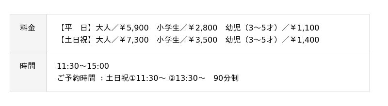 NEW YEARブッフェ料金