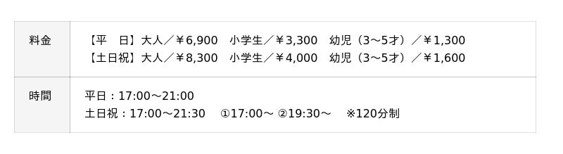表記料金サービス料10%・消費税が含まれております。