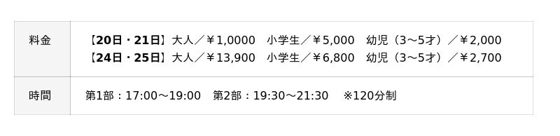 期間:2025年12月20日(土)・21日(日)・24日(水)・25日(木)