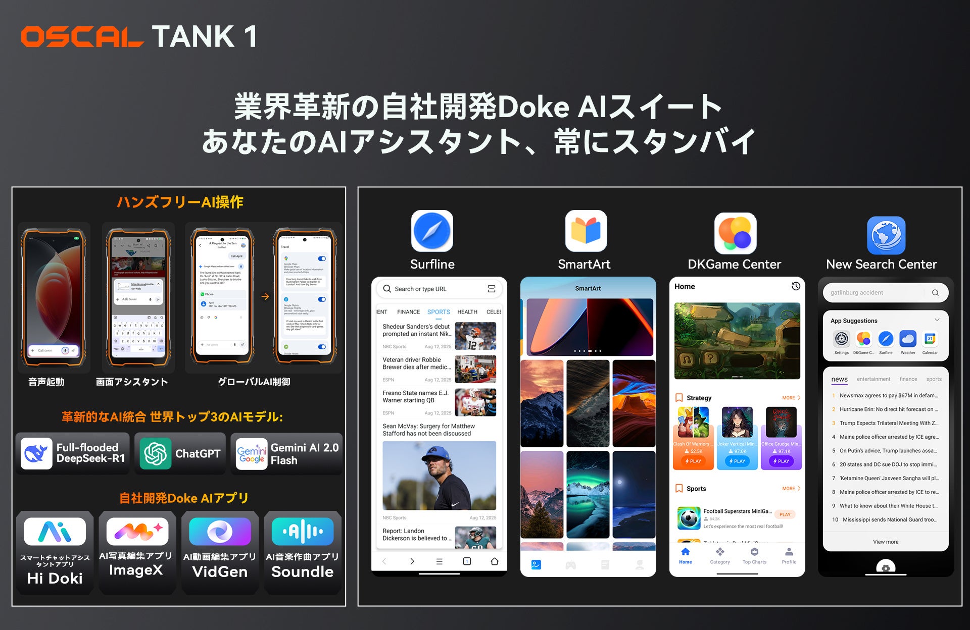 OSCALは、次世代5Gタフネススマートフォンのフラッグシップモデル「TANK 1」を、2025年11月8日(土)よりAmazonで発売します。48GB(16GB+32GB拡張)+512GBモデルをラインアップし、発売記念特別価格として13%OFFの税込65,900円で提供されます。