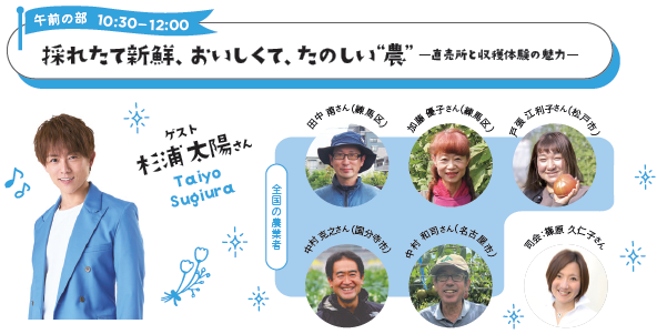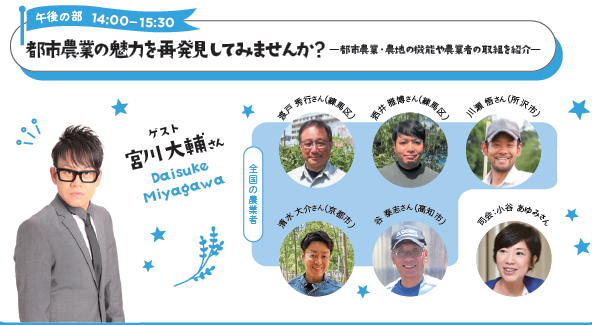 全国から集う10名の農業者とスペシャルなゲストが都市農業の魅力や楽しみ方を語り合います。