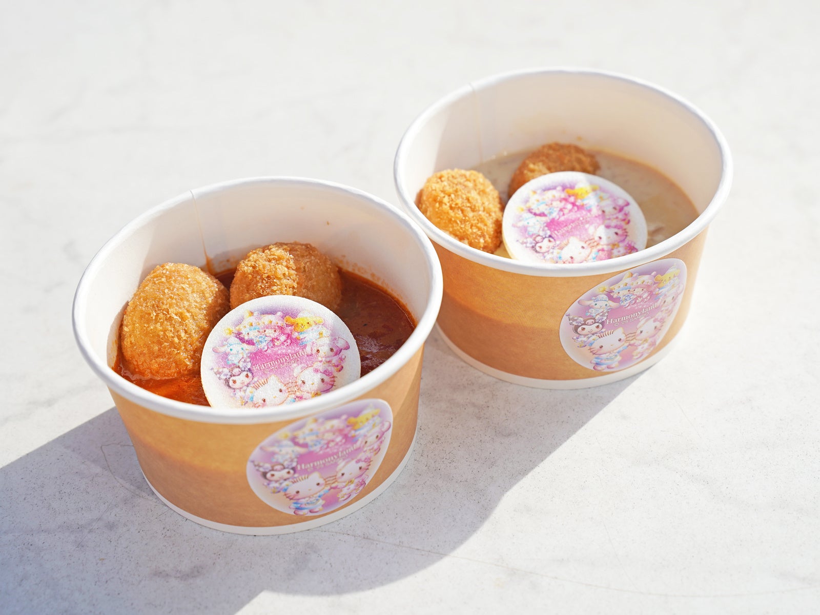 特に注目は、人気の定番カレーがクリスマス仕様になった「ハローキティのクリスマスカレー」。さらに、あたたかいスープメニューとして「クラムチャウダー~リゾット風~」や「チーズミネストローネ~リゾット風~」も登場。スープを一口飲んだ後は、中に入っているチーズ味のライスコロッケを崩してよく混ぜると、リゾット風スープとしてもお楽しみいただけます。また、デザートには、ホットココアの上にイラストビジュアルのピンク色のツリーをイメージしたホイップクリームをトッピングした「キラキラツリードリンク」など、思わず写真に収めたくなるメニューをご用意しています。