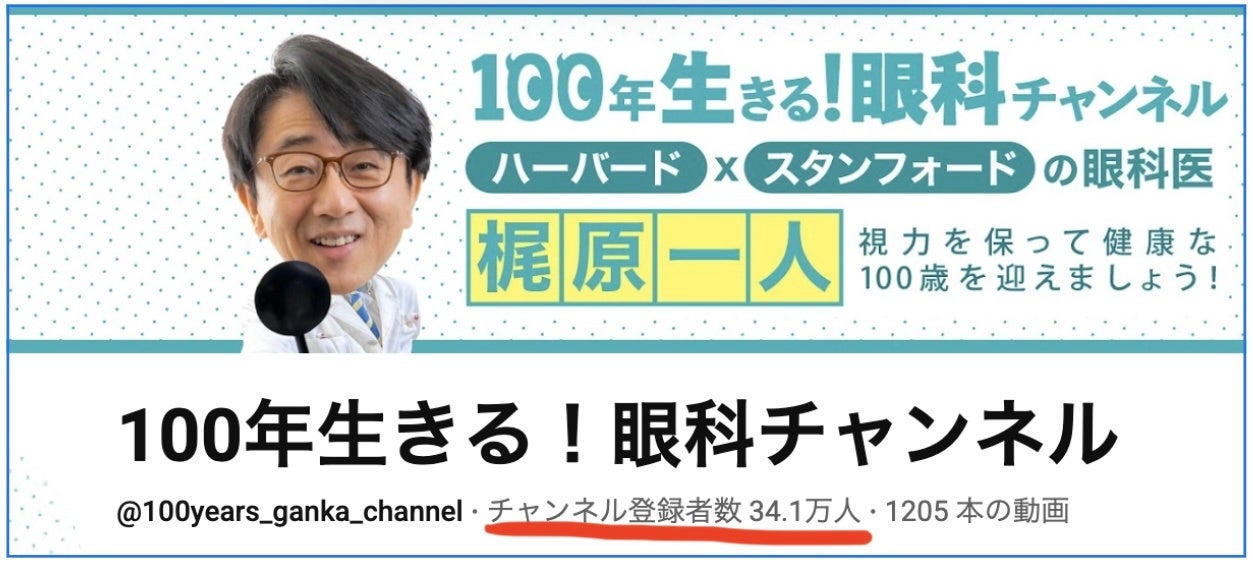 眼科かじわらアイ・ケア・クリニック(東京都墨田区錦糸町)院長:梶原一人が運営するYouTubeチャンネル『100年生きる!眼科チャンネル - YouTube』は、2022年の開設以来、「皆様に正しい医療情報、健康情報をわかりやすく伝える」ことを使命に1200本を超える重要医療情報の発信を続け、今では登録者数34万人を超える総合医療系・眼科系チャンネルに成長しました。これまで当チャンネルでは、目の病気に限らず、脳・心臓・腎臓などの体全体、特に血管の健康を考え、「食」、「栄養」を中心とした健康情報を発信し、多くの視聴者から反響をいただいてきました。