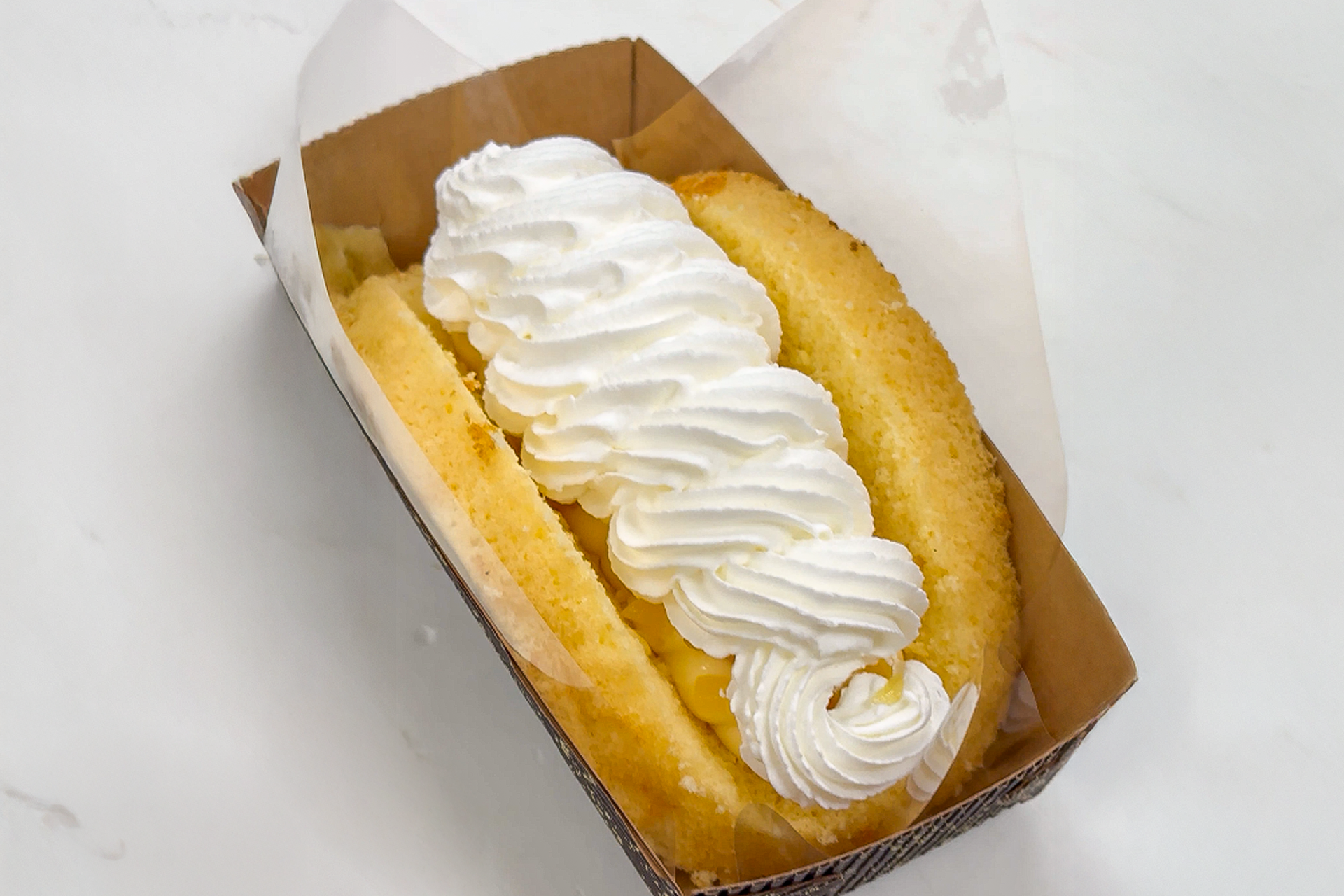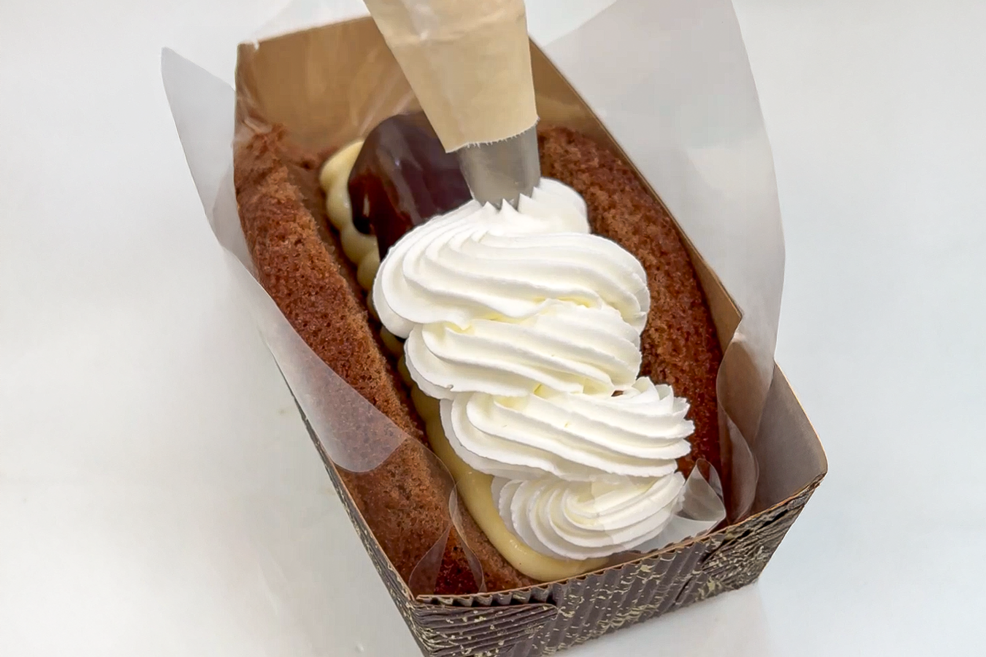 ふわふわのプレーンスポンジに、生クリームとカスタードがとろけ合う、幸せすぎるひと口。