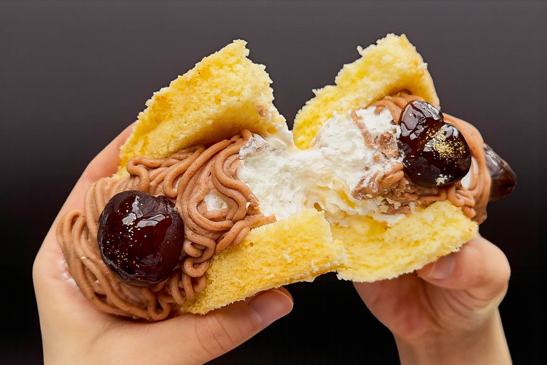 香ばしく濃厚なマロンクリームが口いっぱいに広がり、刻み栗のほくほくとした歯ごたえがアクセントに。そこへ生クリームのミルキーなコクと、カスタードのまろやかさが重なって、まるでモンブランケーキを丸ごと頬ばったような、圧倒的な満足感です。