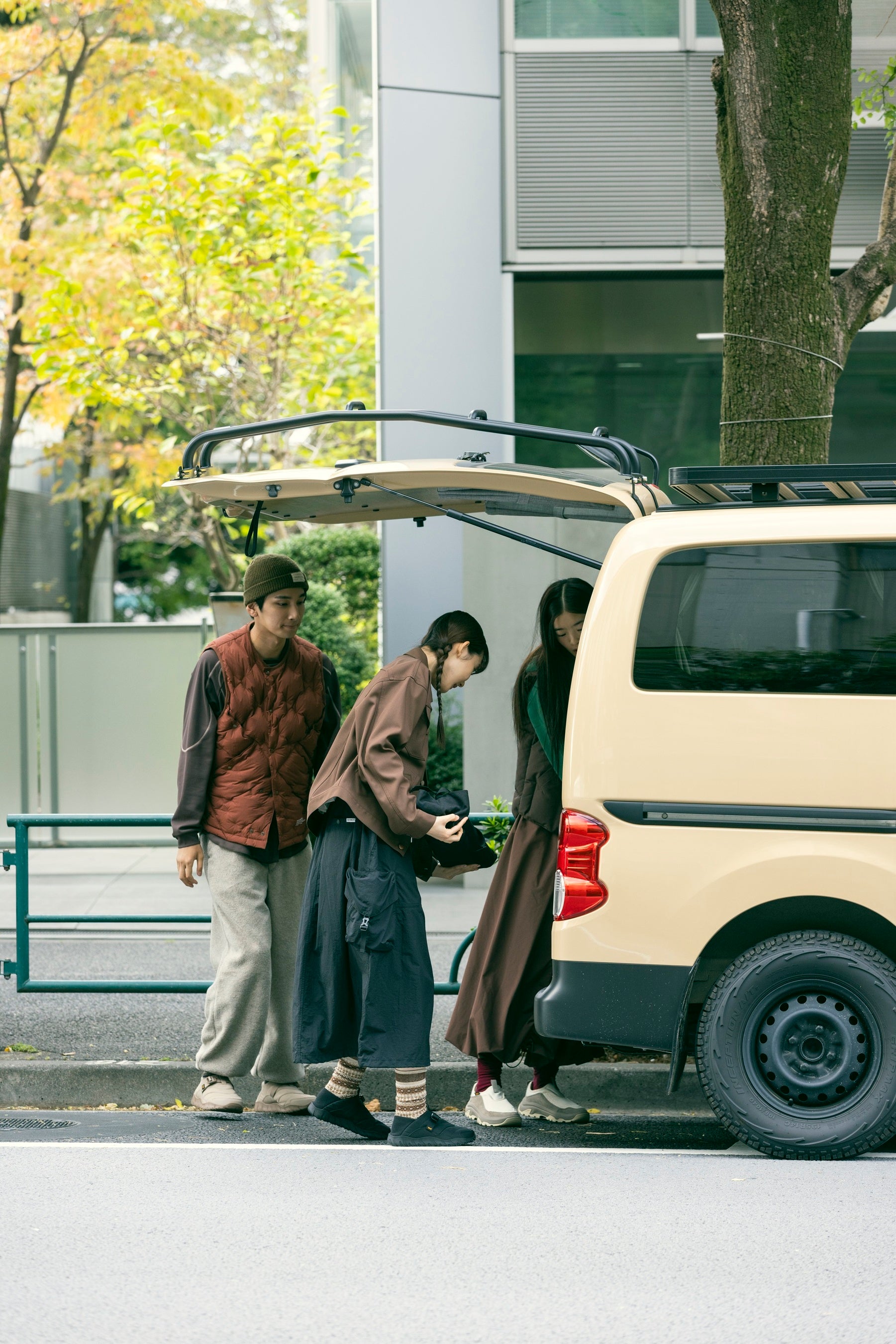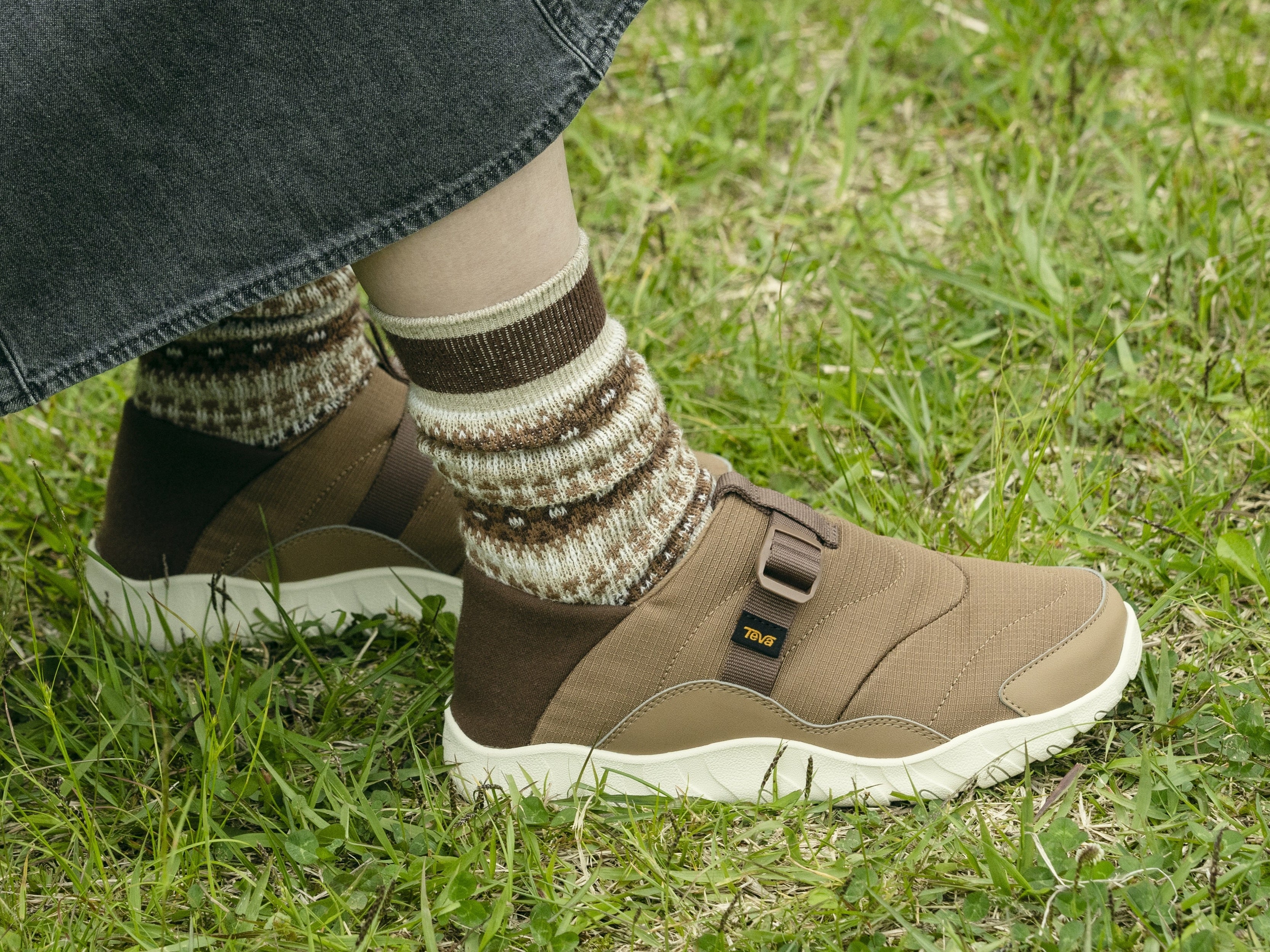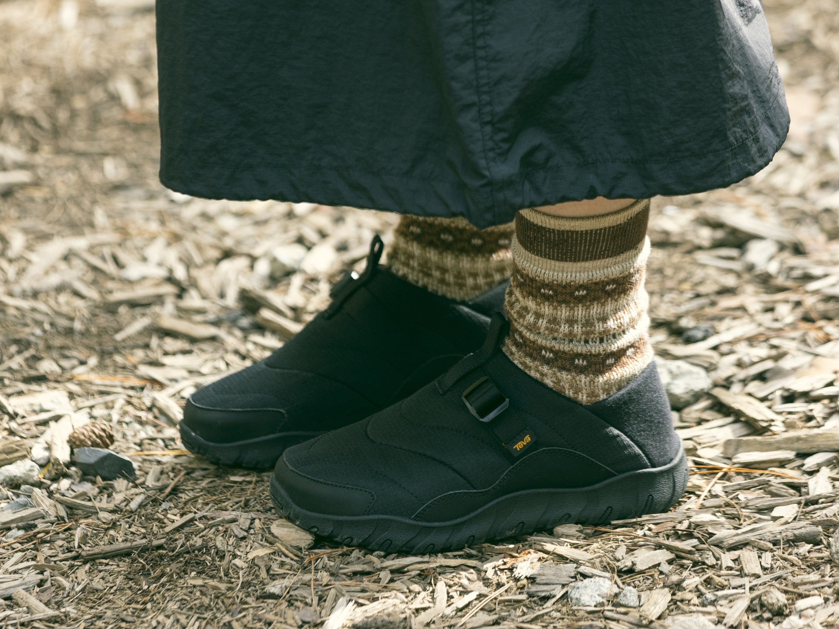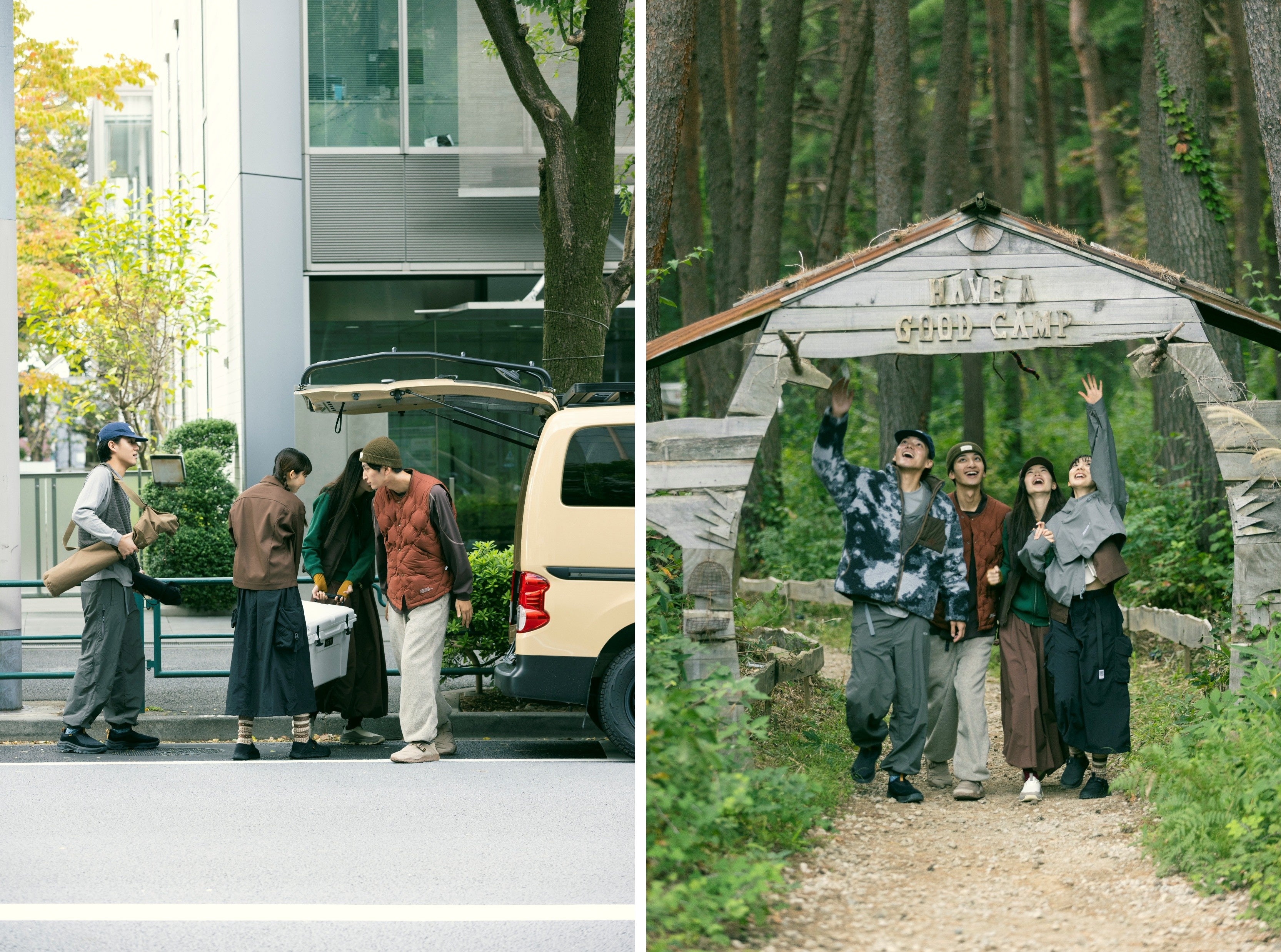 木々も色づき始めた自然の中へ、友人たちと気軽にキャンプに繰り出すその足元にはTevaが最適。街からアウトドアまでをこの1足がシームレスに繋いでくれます。気の置けない仲間と過ごす週末旅のビジュアルを通して、Teva2025秋冬新作のハイブリット性と、ブランドメッセージを感じてください。