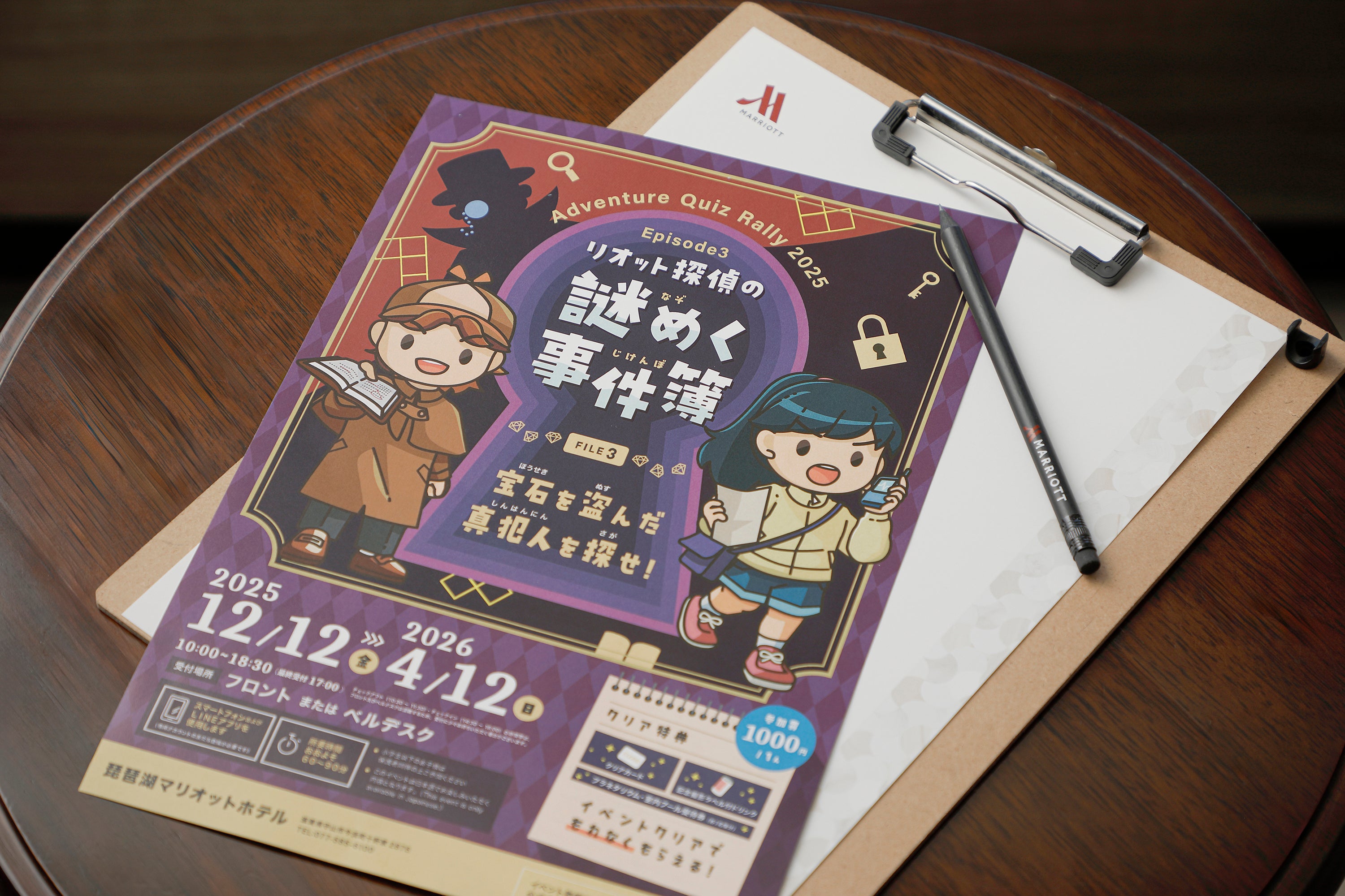 琵琶湖マリオットホテル(滋賀県守山市今浜町、総支配人:荒木 義雄)では、2025年12月12日(金)~2026年4月12日(日)の期間、オリジナル謎解きイベント「Adventure(アドベンチャー) Quiz(クイズ) Rally(ラリー) 2025 “Episode(エピソード) 3”」を開催いたします。