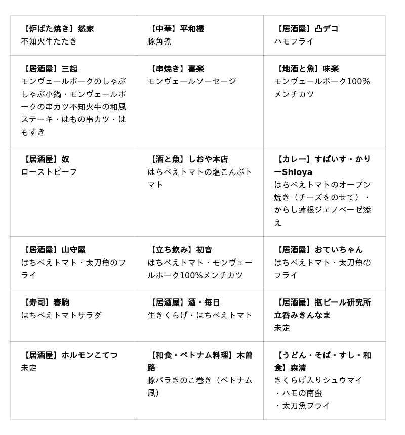 新梅田食道街の18店舗で、くまもと県南食材を使ったオリジナルメニューを提供します。