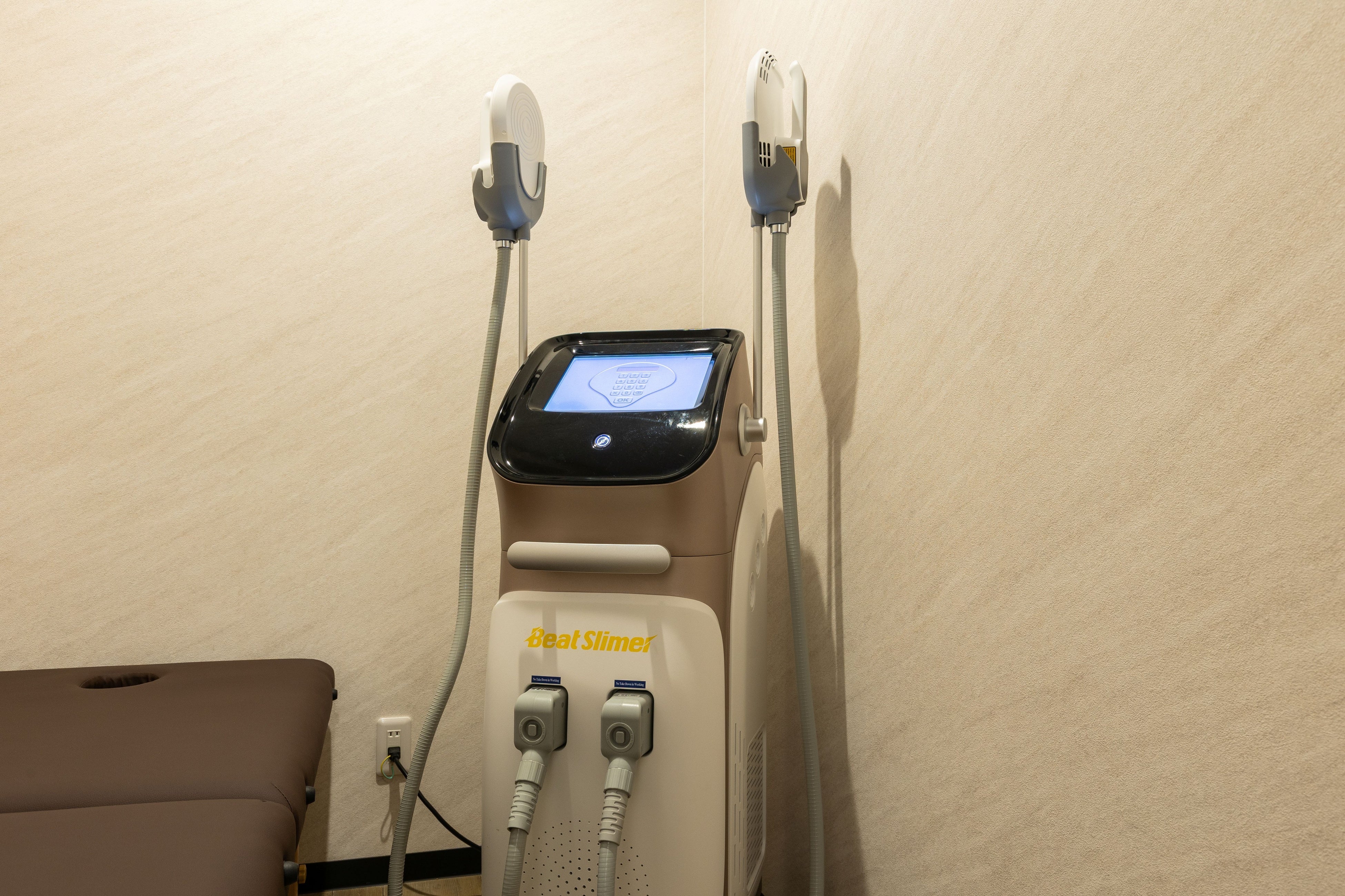 服を着たまま座るだけで「筋肉+脂肪」両方にアプローチできます。なかなか鍛えることのできない骨盤底筋や下半身を電磁パルスの刺激で座るだけで鍛えることができる美容マシンです。
