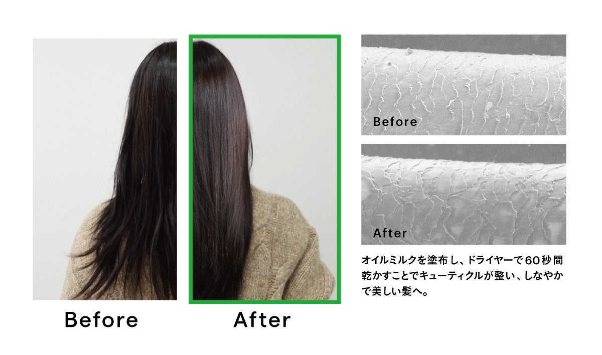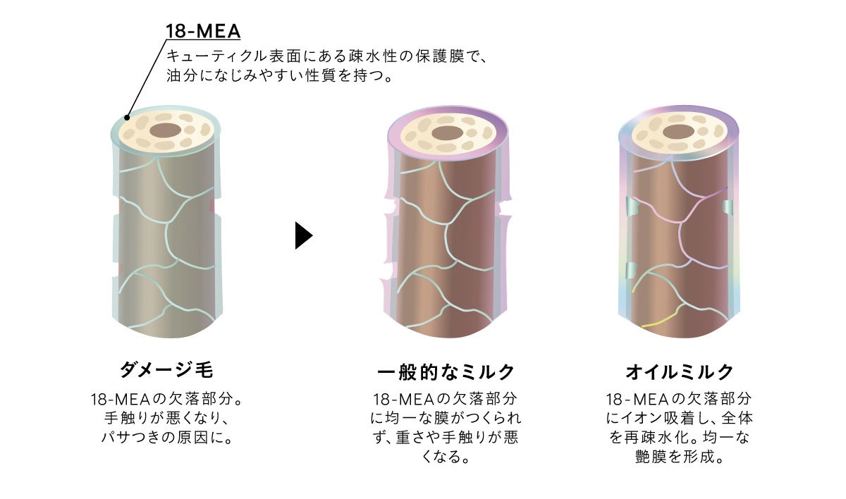 プロの現場から日常のケアまで、あらゆるニーズに応えるべく、オイルの濃密な潤いとミルクの軽やかさを融合した「次世代オイルミルク」が誕生。芯から補修しながら、重ねてもふわりとまとまる髪へ。