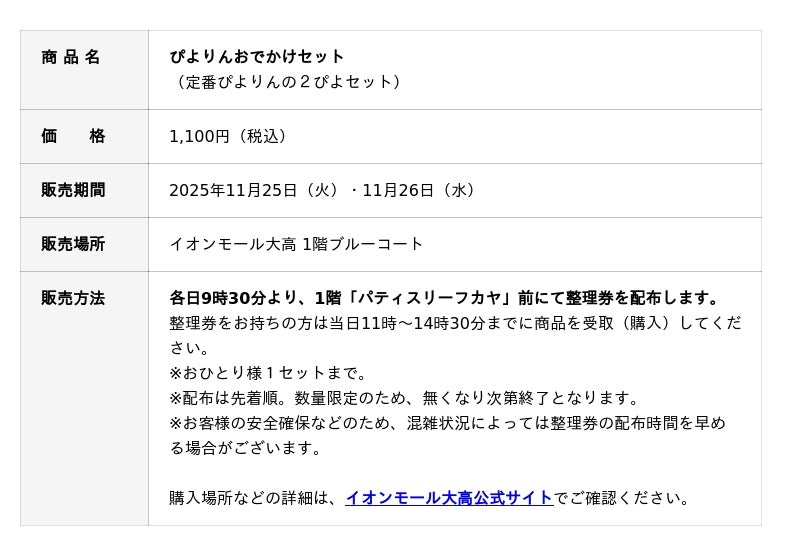 2025年11月25日(火)・26日(水) イオンモール大高 1階「ブルーコート」にて限定販売