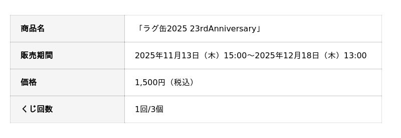 2025年11月13日(木)15:00より、「ラグ缶2025 23rdAnniversary」の販売を開始いたします!
