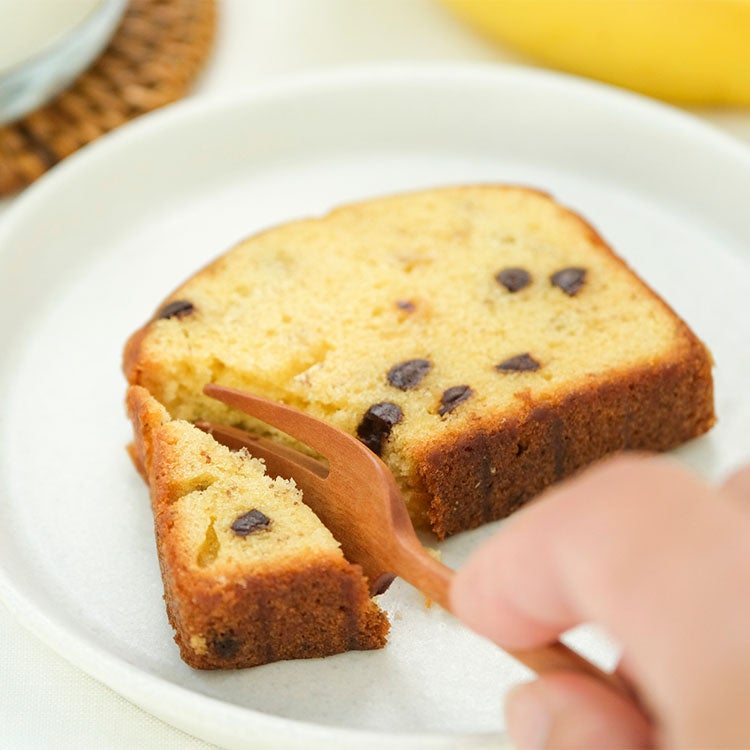 「完熟したバナナを丁寧にジャムにして生地に練り込み、自然な甘さと香りを大切にしました。ダークチョコの苦みがほどよく、朝でも重くならない軽やかな食感のパウンドケーキです。」